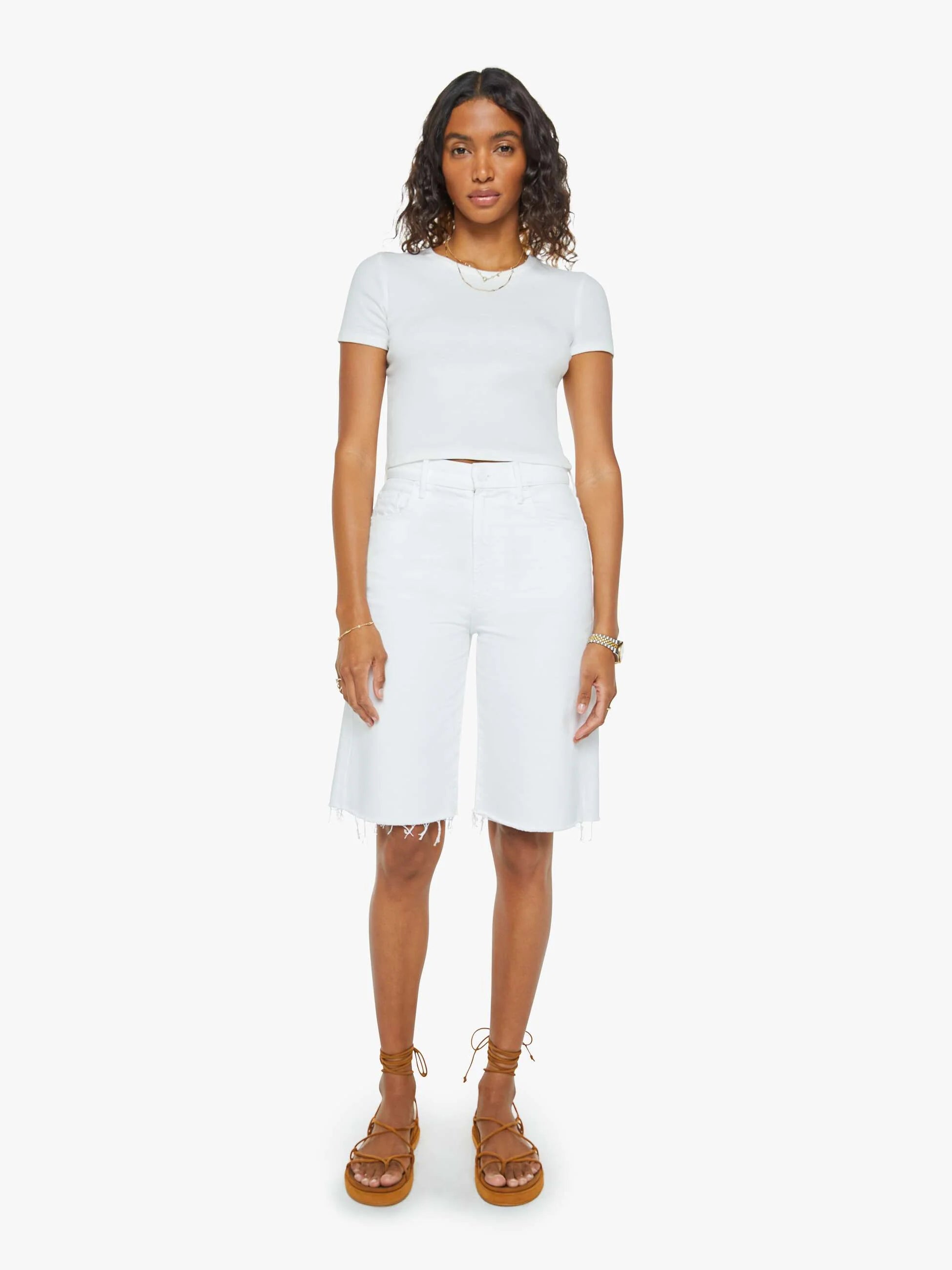 MOTHER’s spin on the Bermuda short features a super high rise, relaxed leg, knee-length inseam, and a raw frayed hem for laid-back edge. Crafted from rigid SUPERIOR denim, Picket Fence comes in a crisp bright white with tonal hardware for a clean, modern finish.