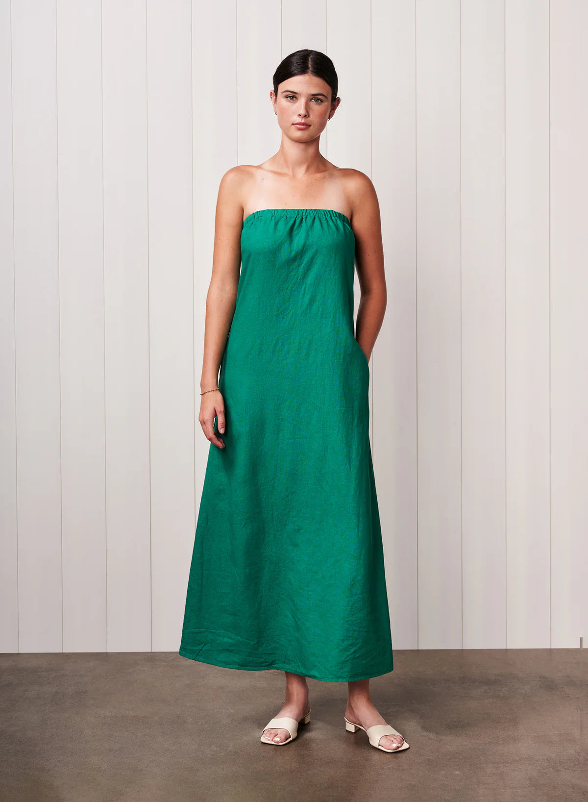 Linen Column Maxi Dress in Campus Green
