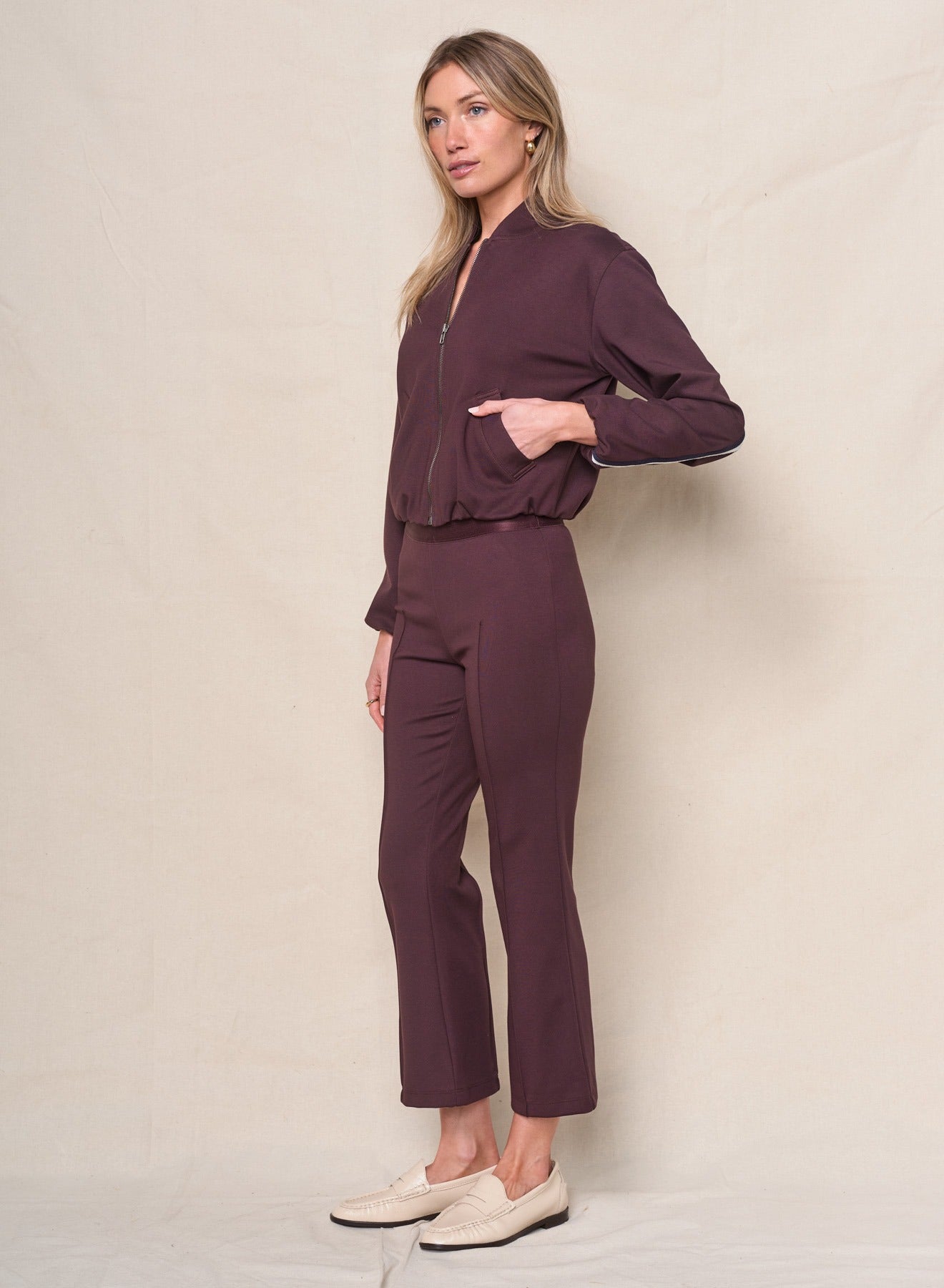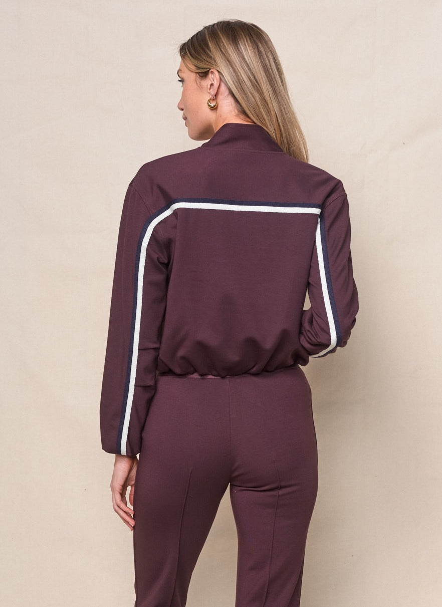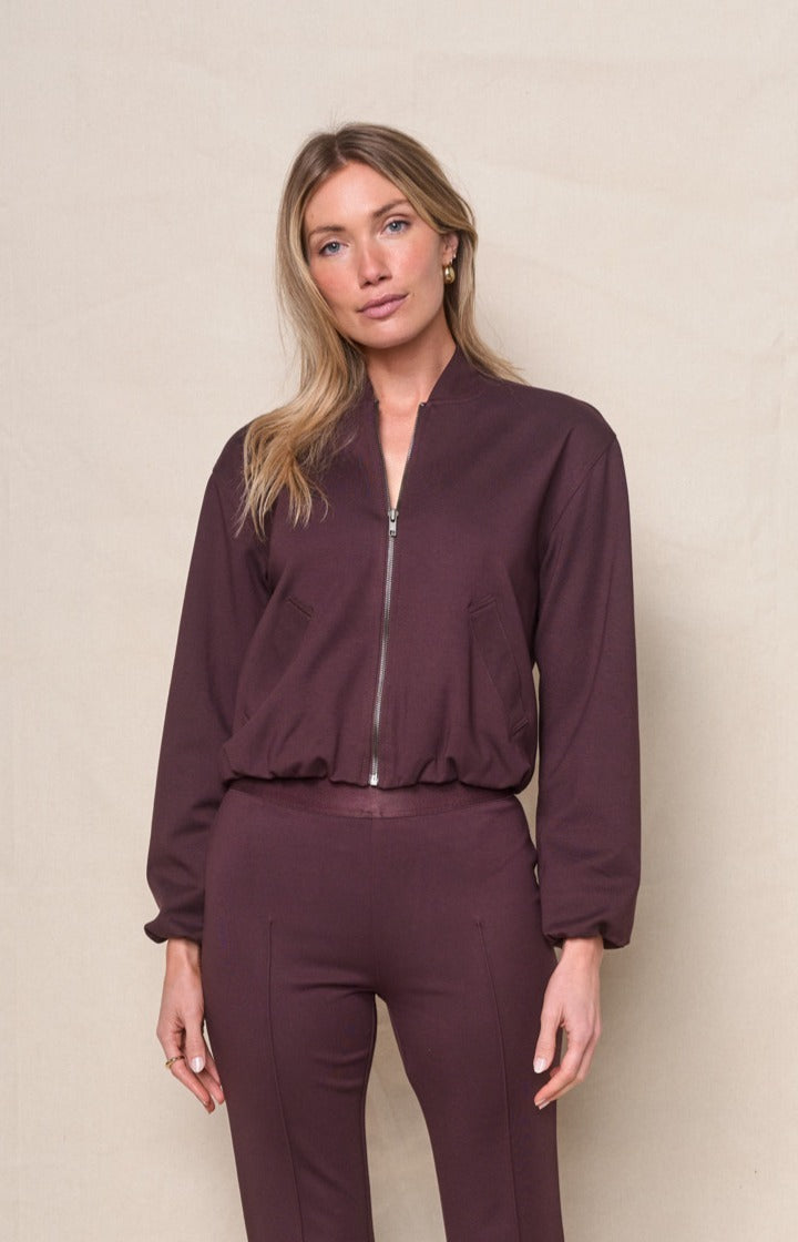 Luxe Ponte Bomber Jacket in Cabernet