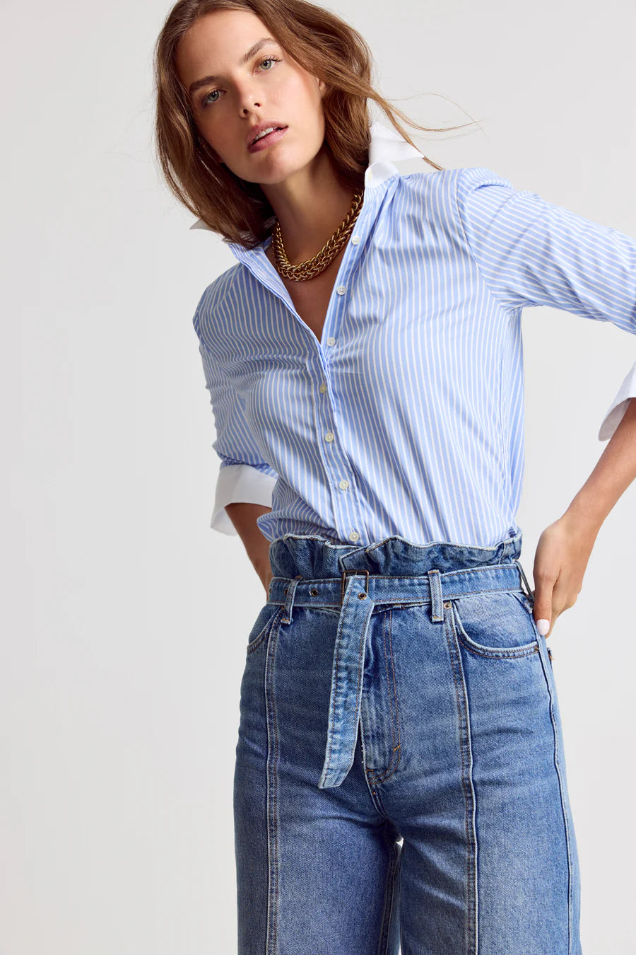 The Icon Shirt in Stripe Sky Blue/White Collar