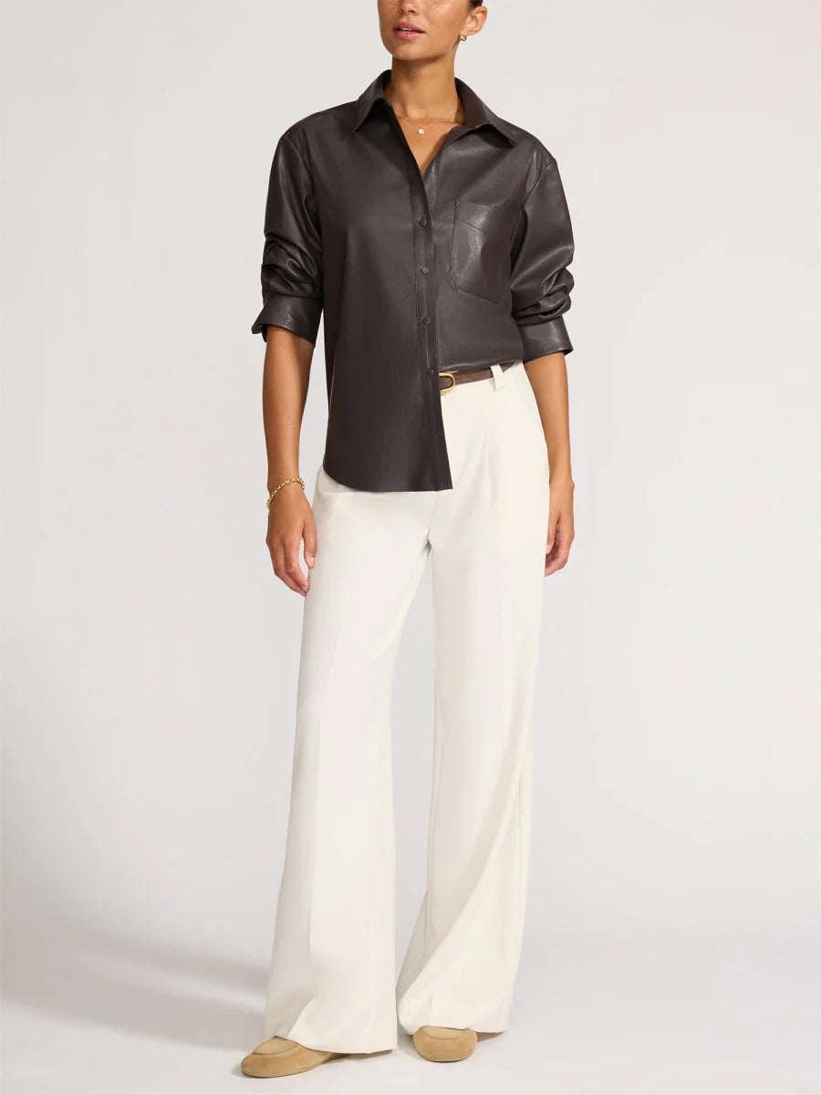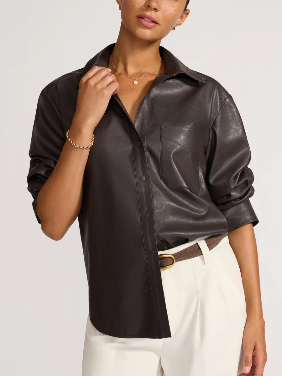 Pia Vegan Leather Shirt in Timber