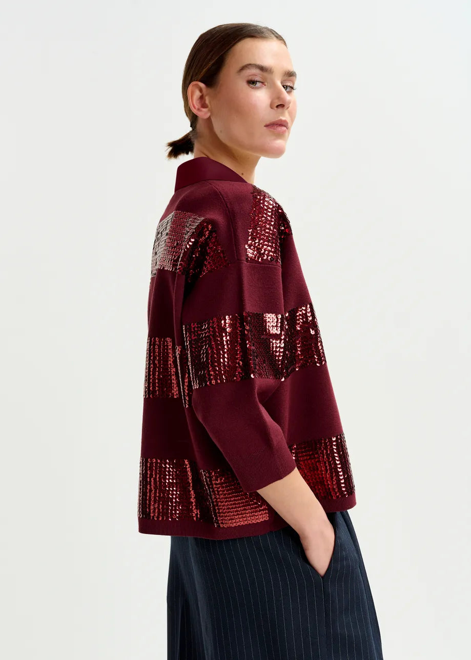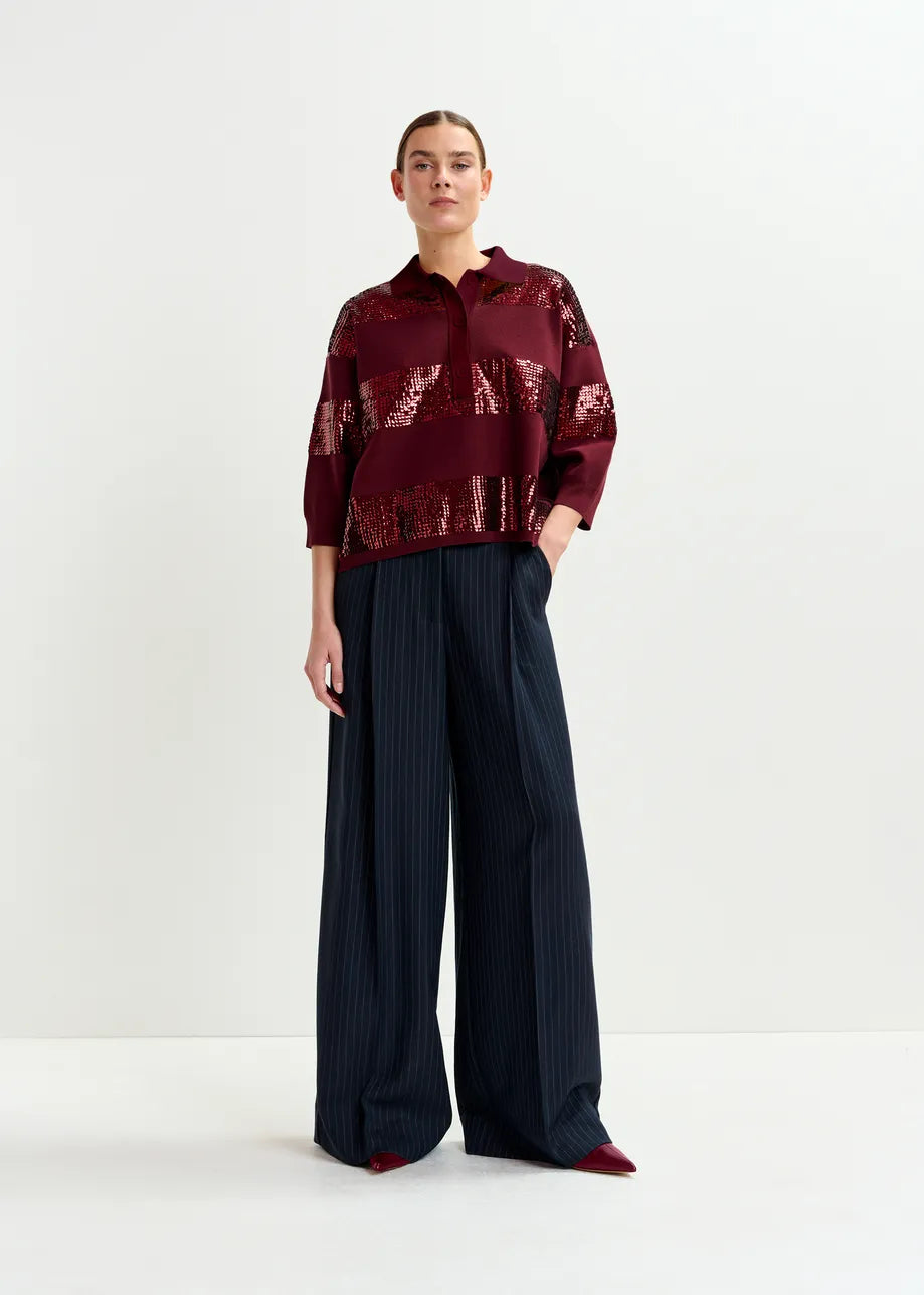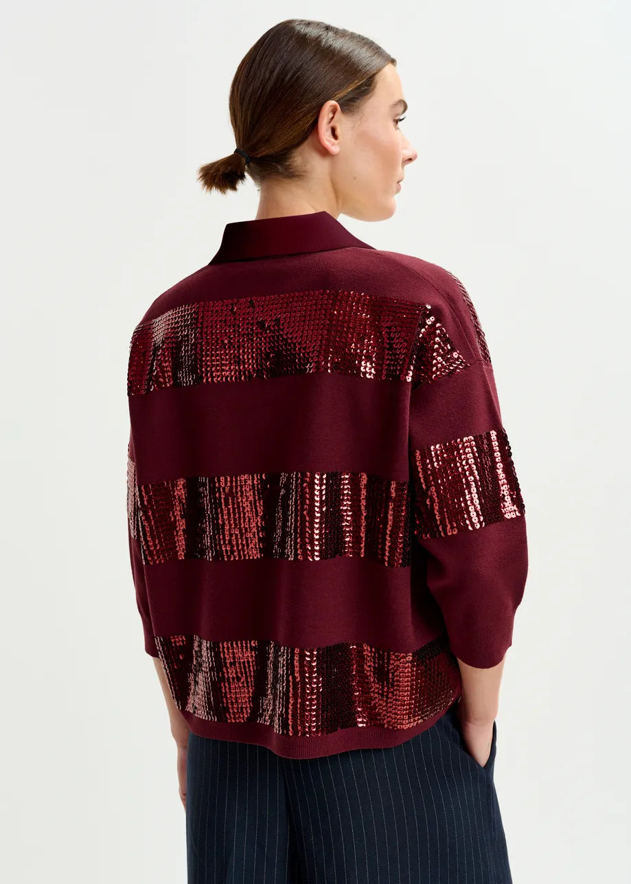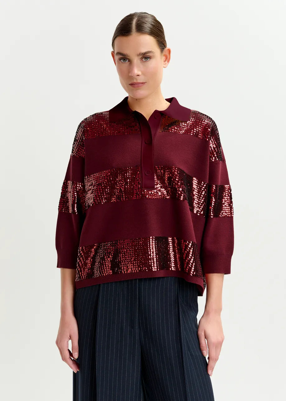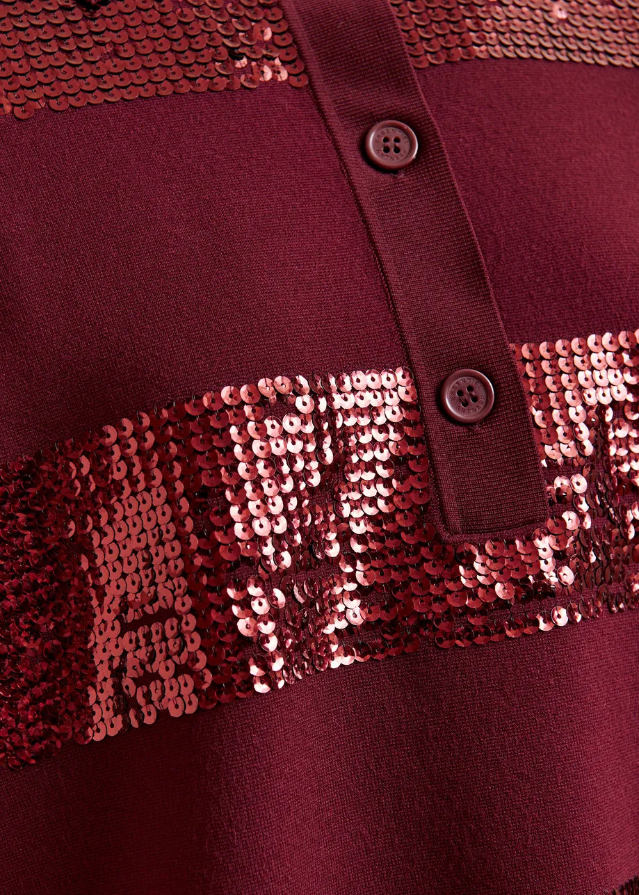 Illuminati Striped Sequin Polo in Margot Mauve