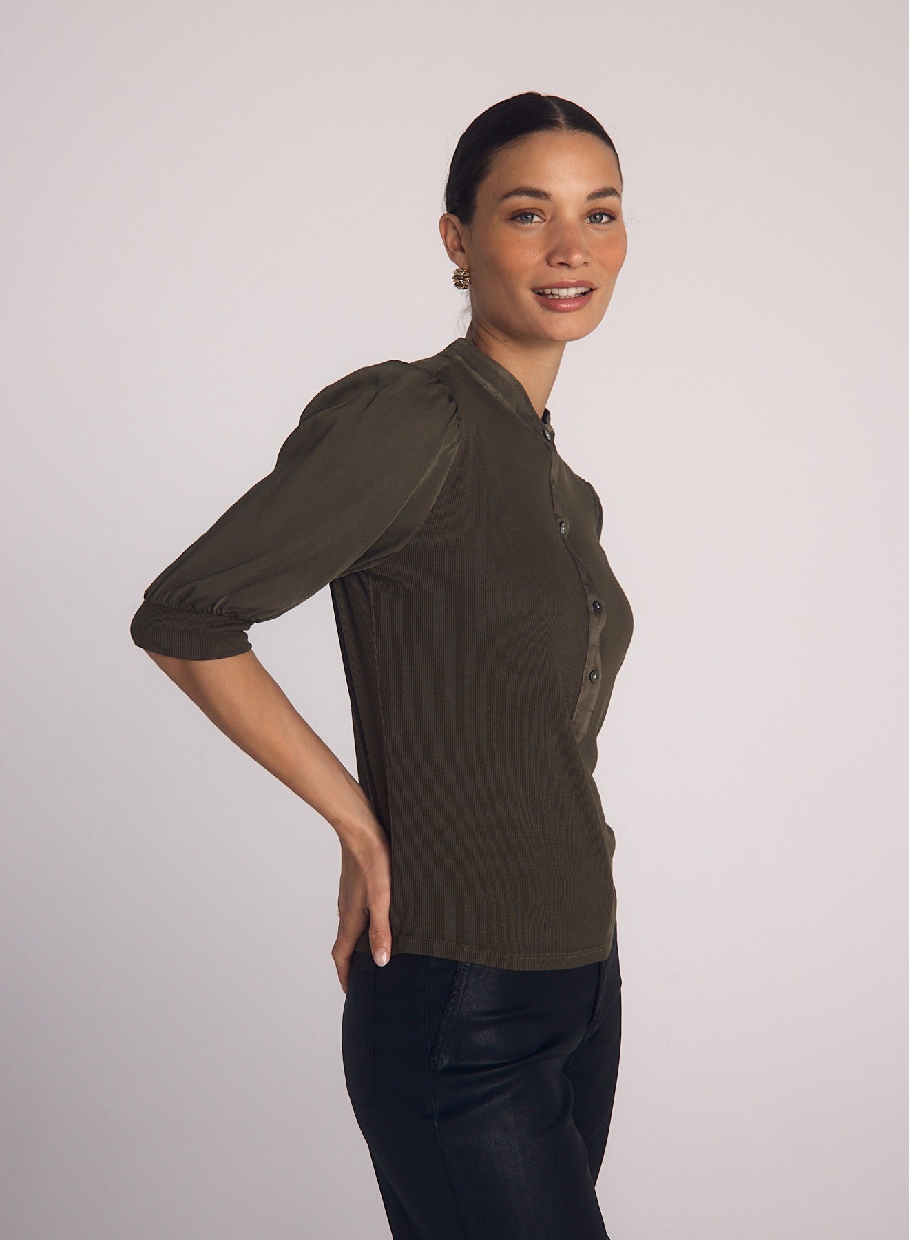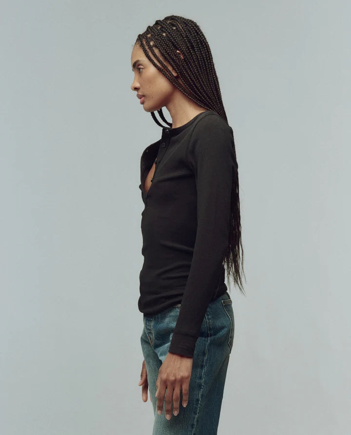 The Baby Rib Henley in Almost Black
