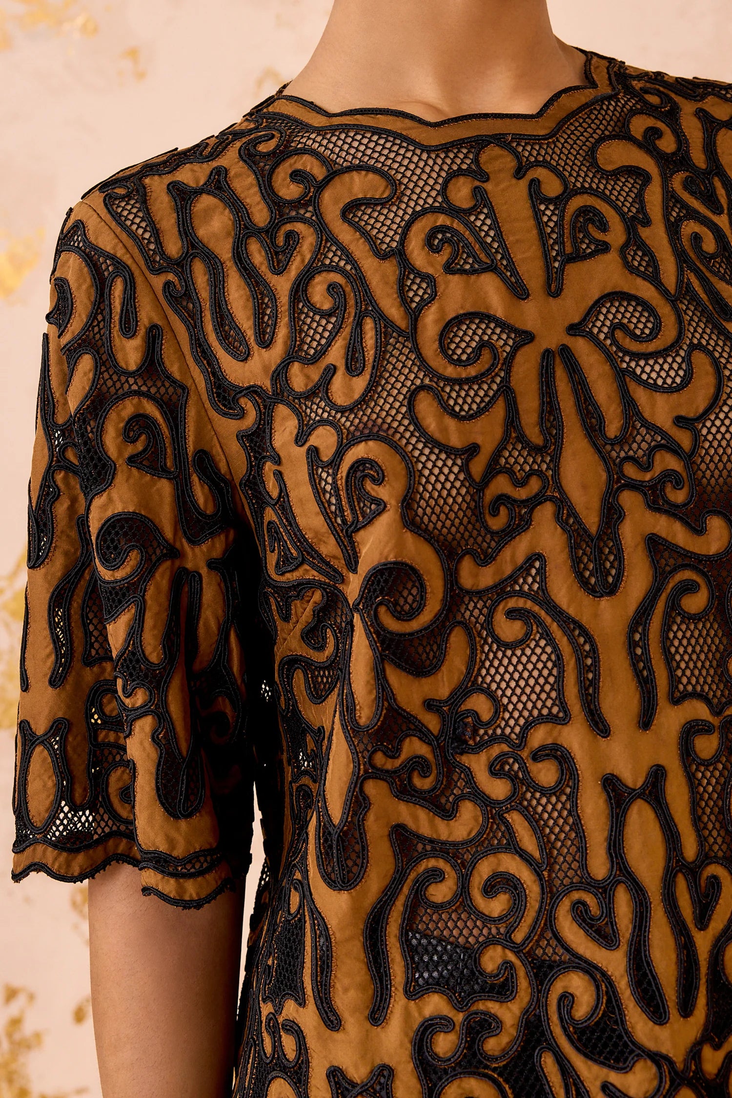 Tasia Applique Short Sleeve Top in Saffron