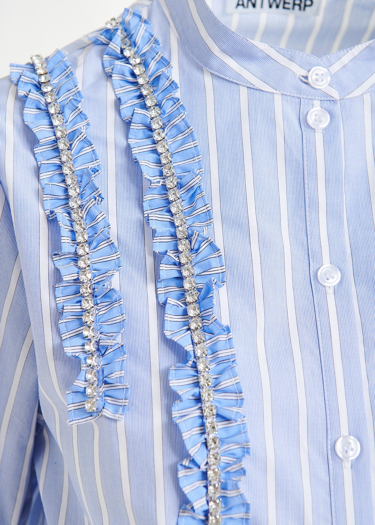 Ifrill Rhinestone Frill Shirt in Pale Kingsblue