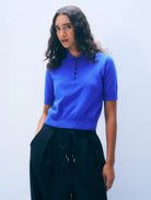 Cashmere Button Polo in Cobalt Blue