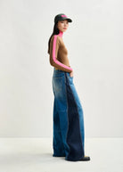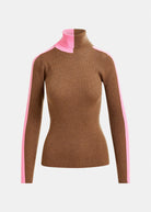 Close-fit sweater in a ribbed wool blend with recycled polyester for added sustainability. Designed with a bold two-tone palette that contrasts front and back, and finished with an asymmetric turtleneck and ribbed trims for a refined yet distinctive look.