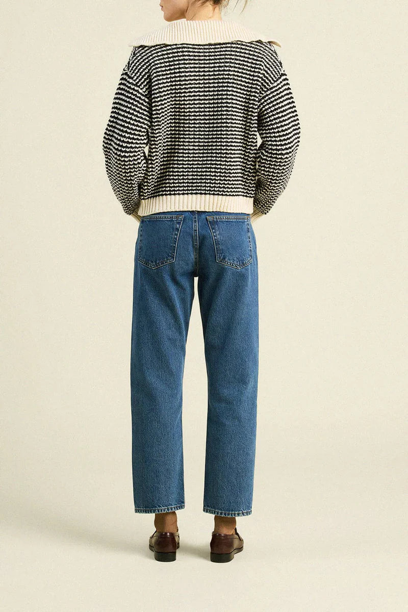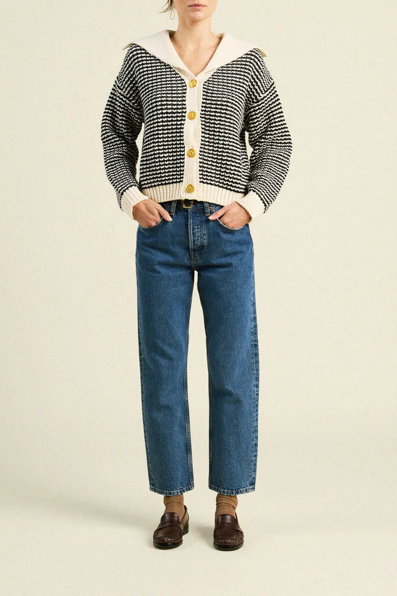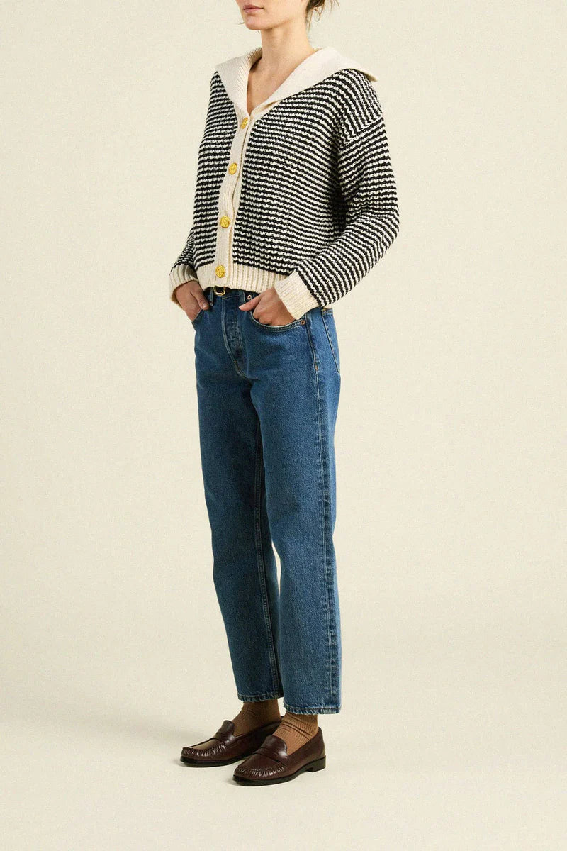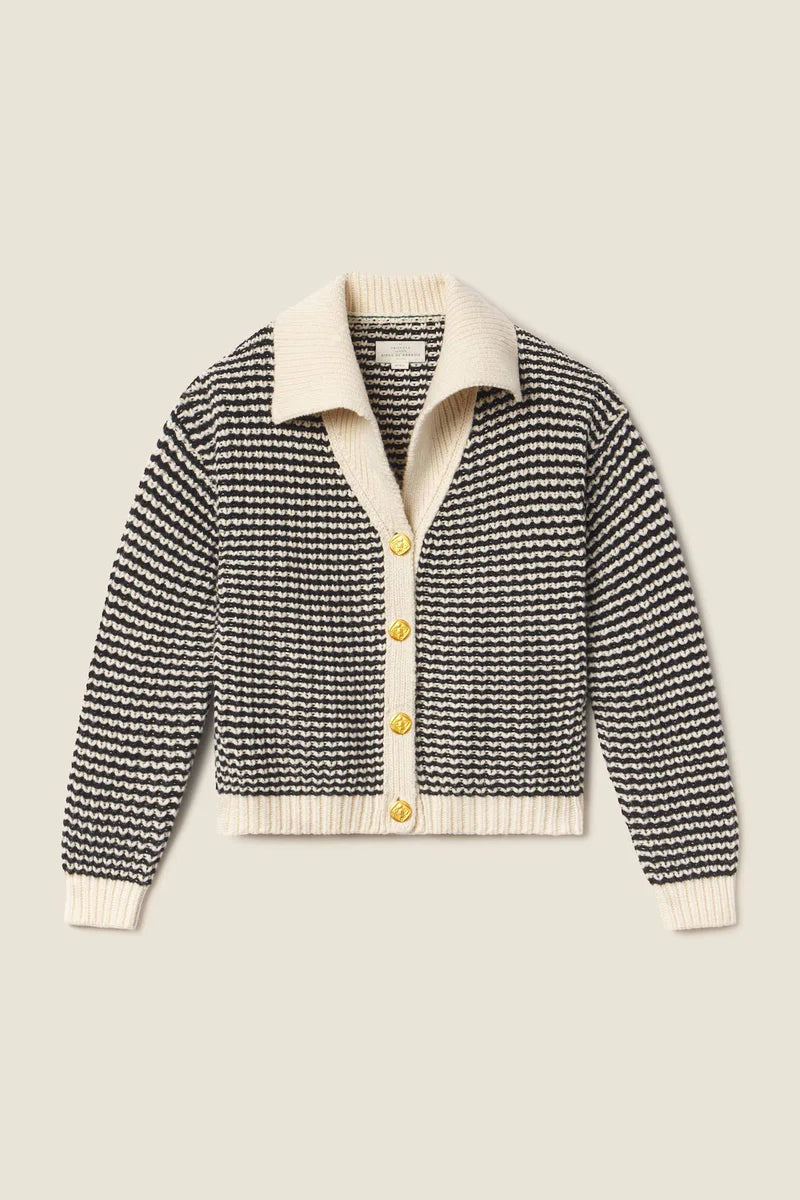Savannah Cardigan in Antique White/Black Stripe