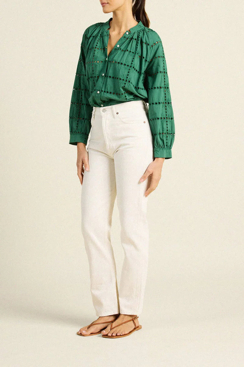 Mena Blouse in Emerald Eyelet