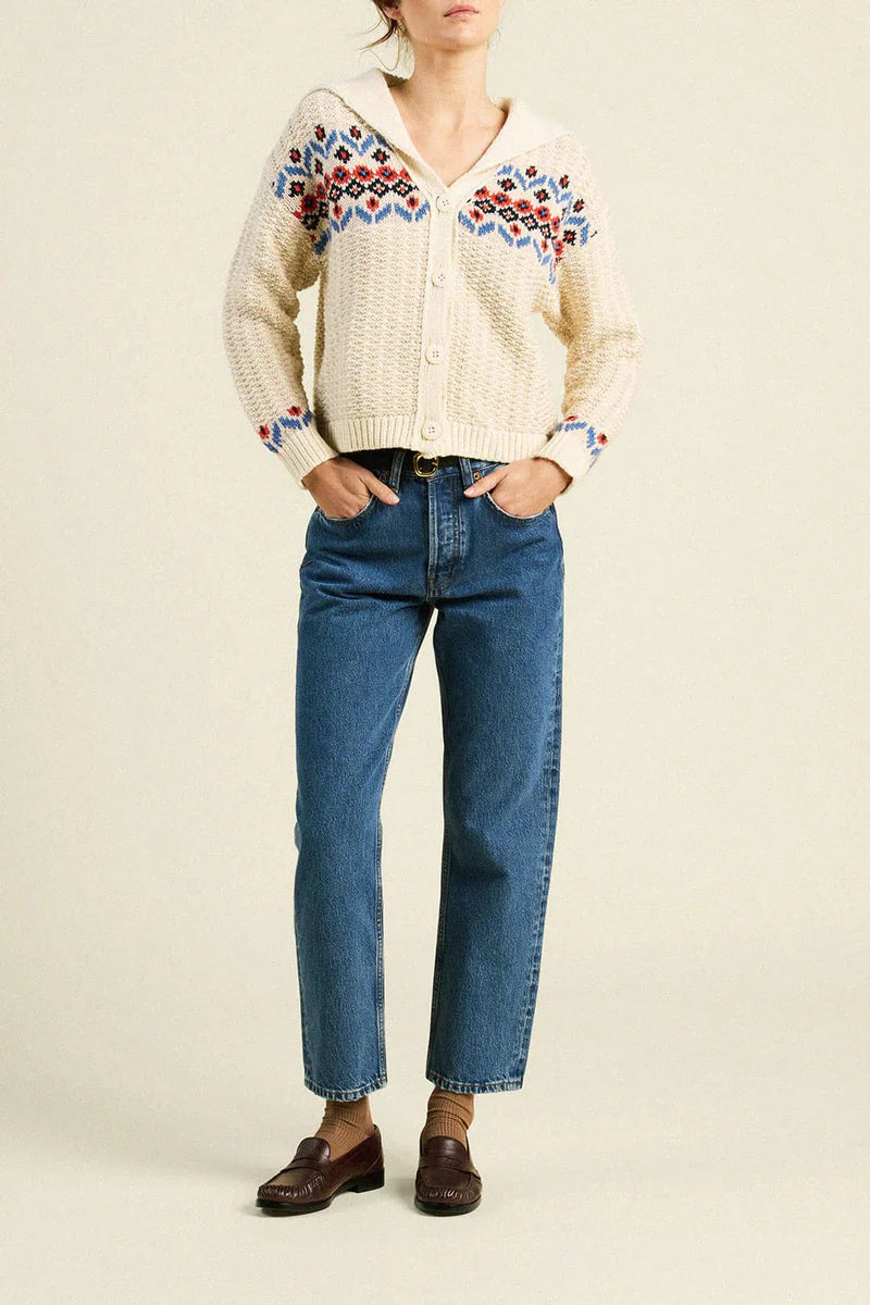 Savannah Cardigan in Antique White Fairisle