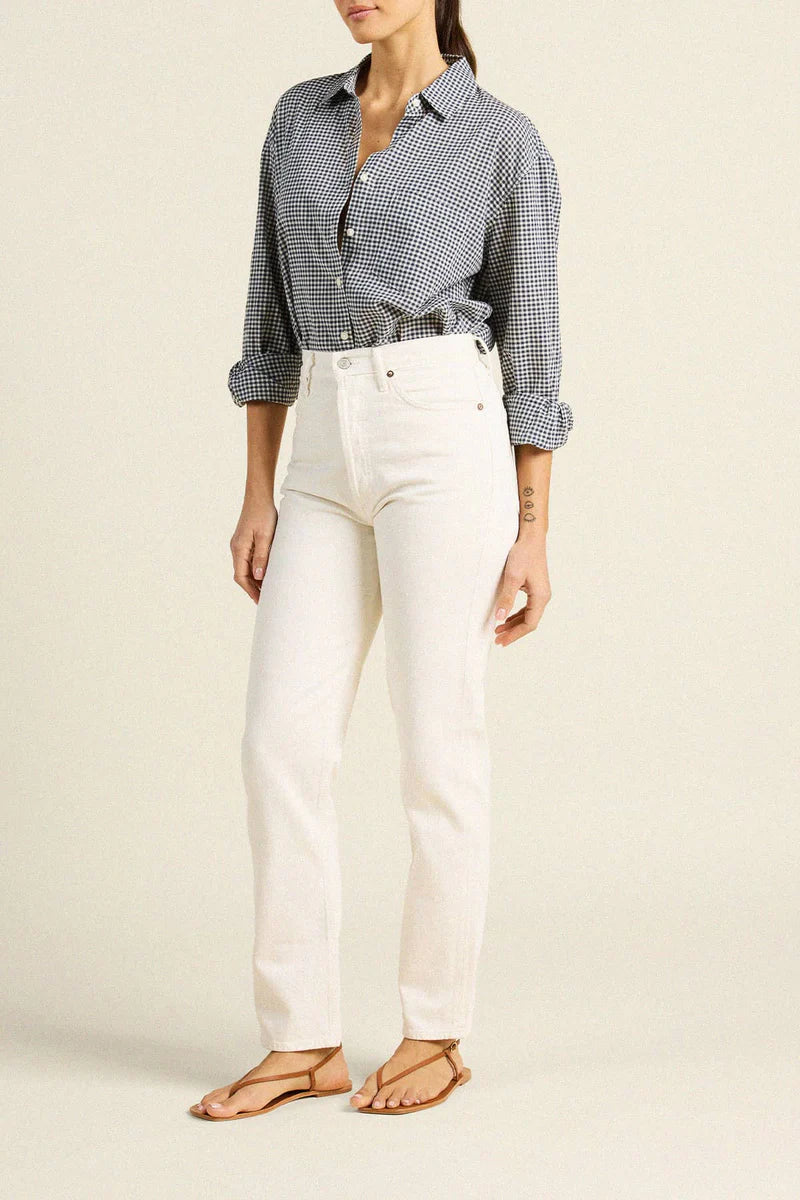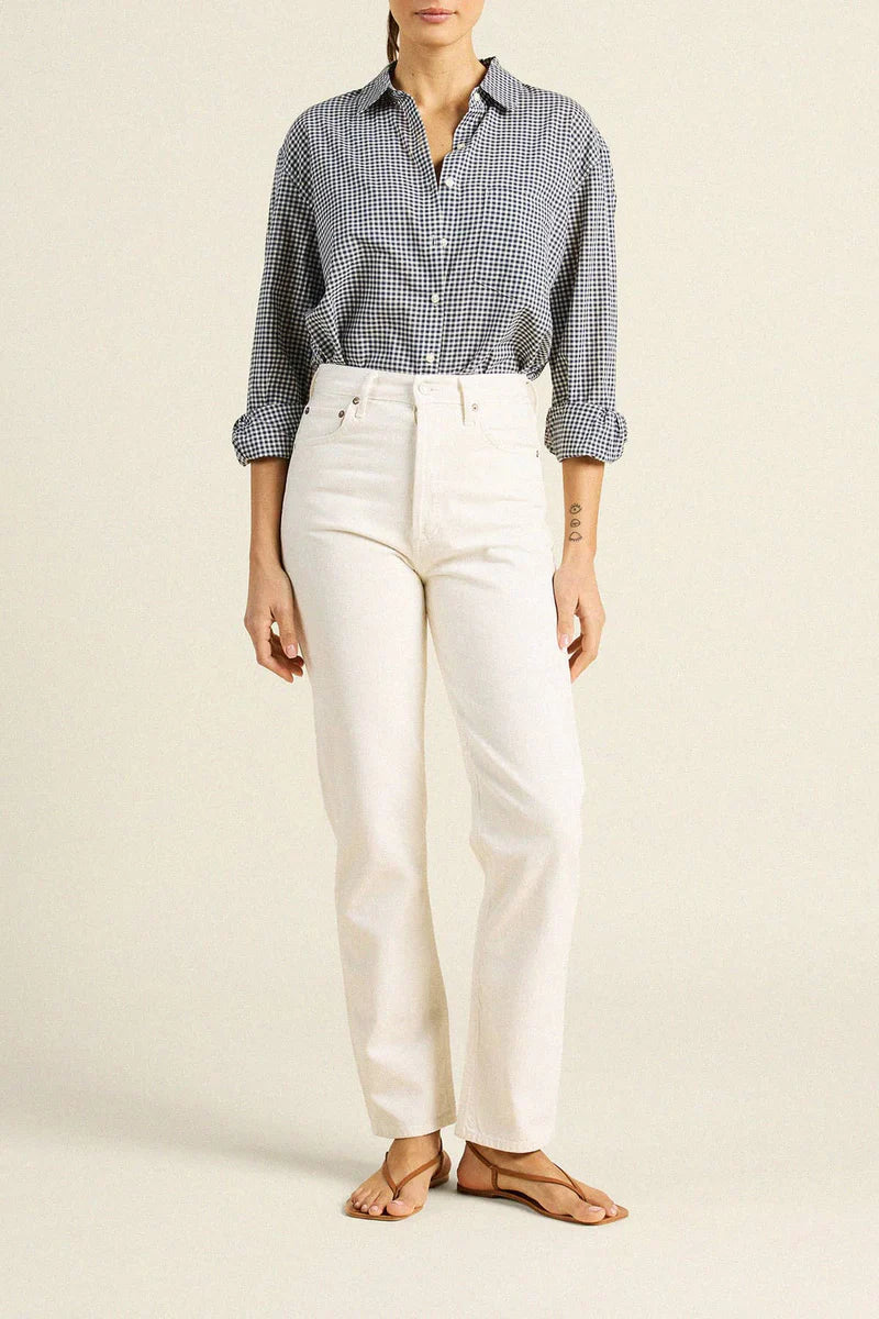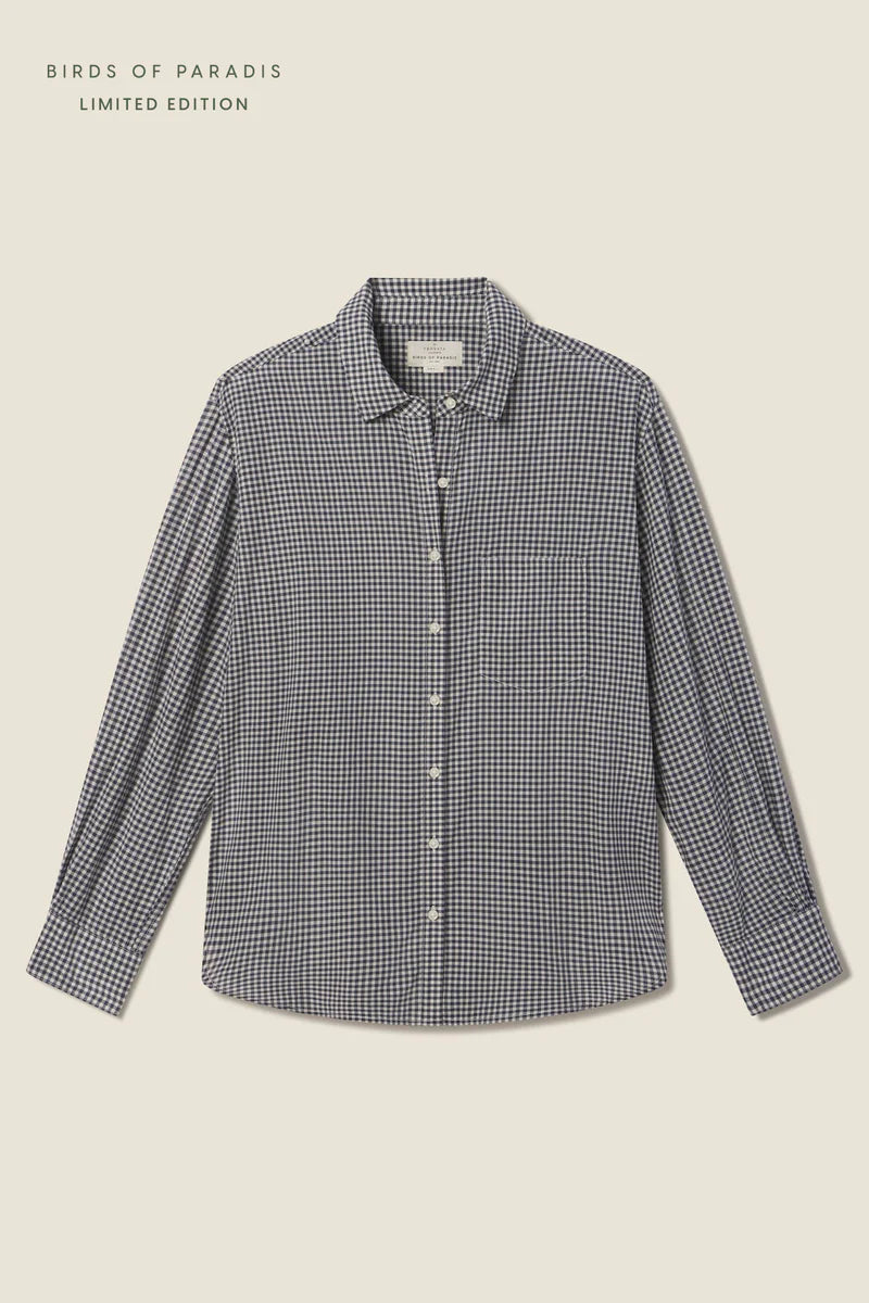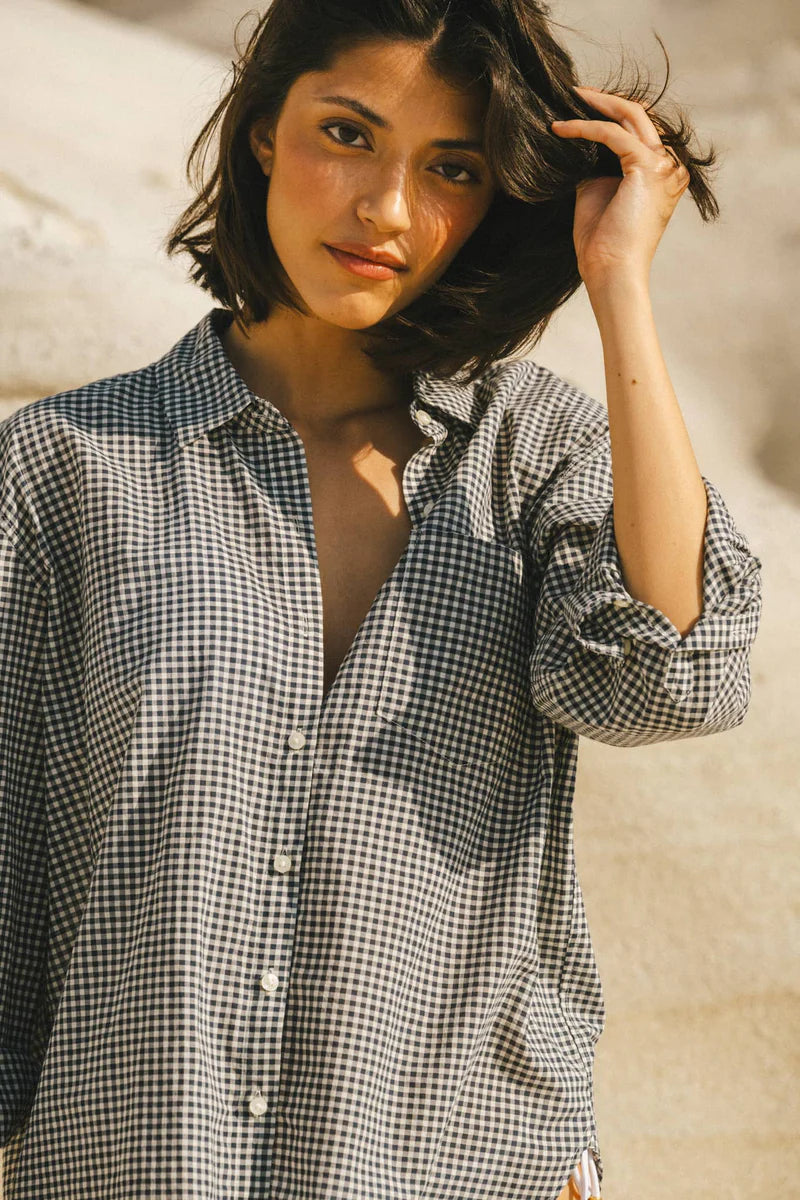 The Blake Oversized Boyfriend Shirt is a timeless button-down designed to be a lasting staple in your wardrobe. Crafted from soft cotton in classic Inkwell Gingham, it only gets better with time—growing softer with every wash. Featuring a relaxed, oversized fit, antique white buttons, and a single chest pocket, it blends laid-back ease with everyday polish. Perfect for layering or wearing solo, it’s the kind of piece you’ll reach for again and again.