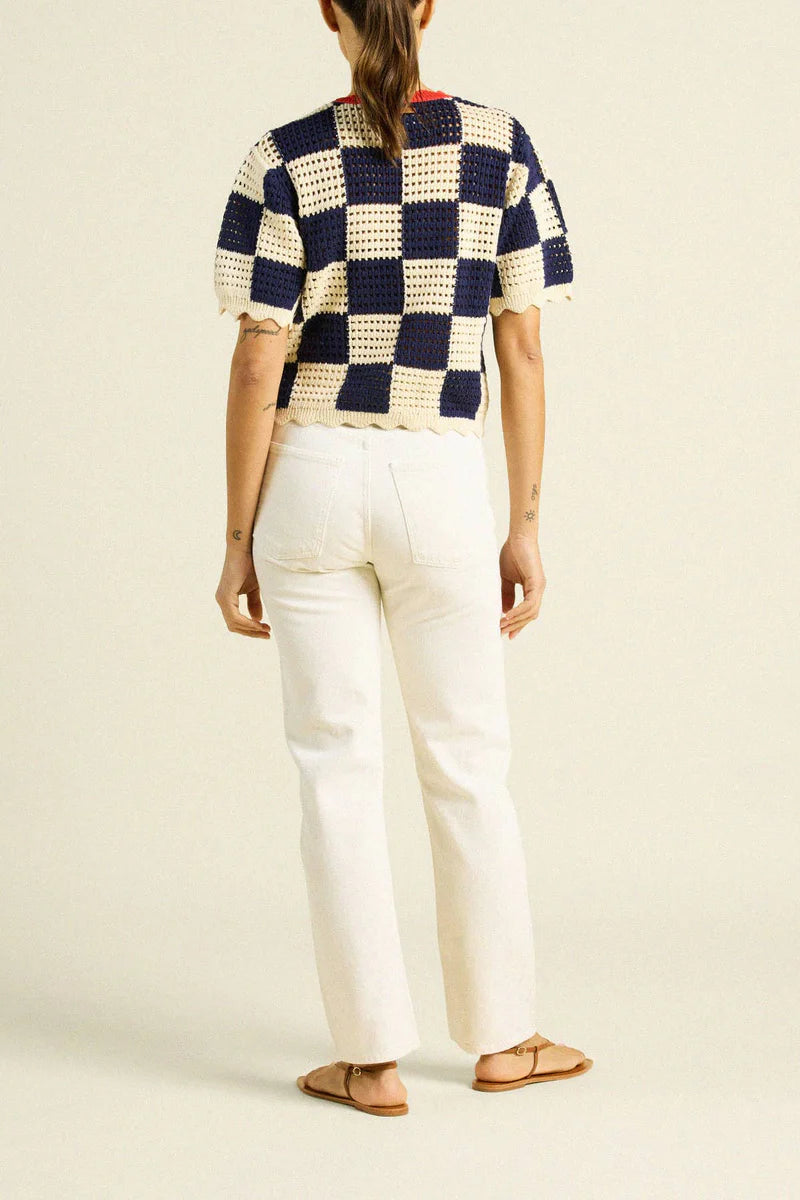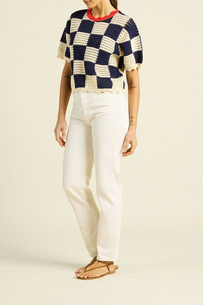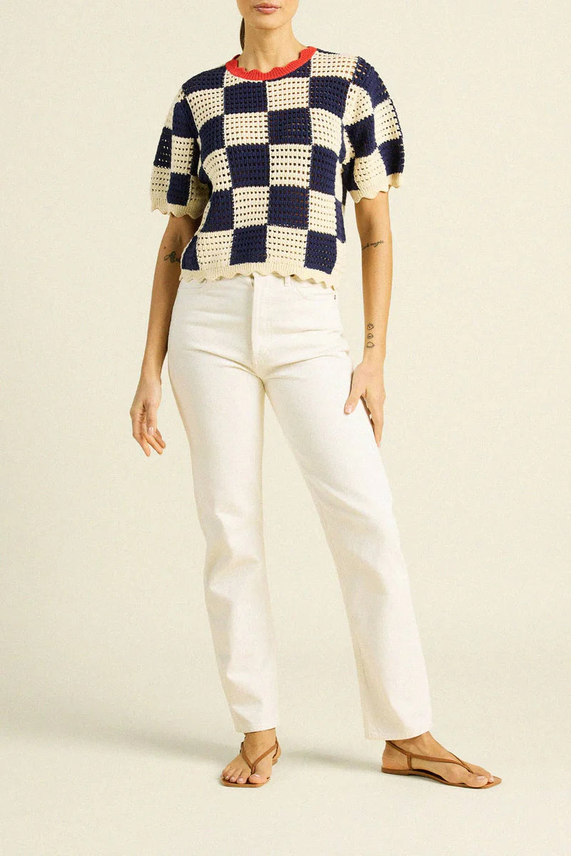 Jules Sweater T-Shirt in Navy/Antique White Check