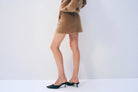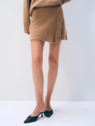 Brushed Cashmere Fringe Mini Skirt in Caramel