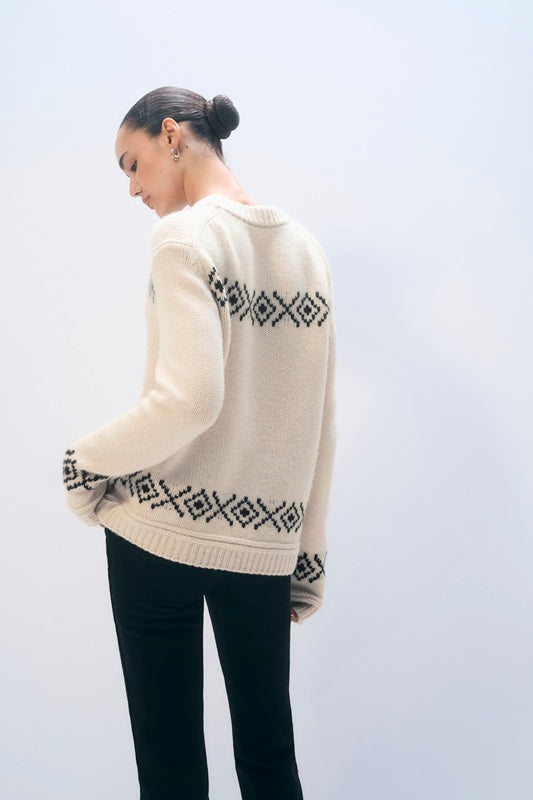 Cashmere Blend Ski Crewneck in Ivory/Black/Red