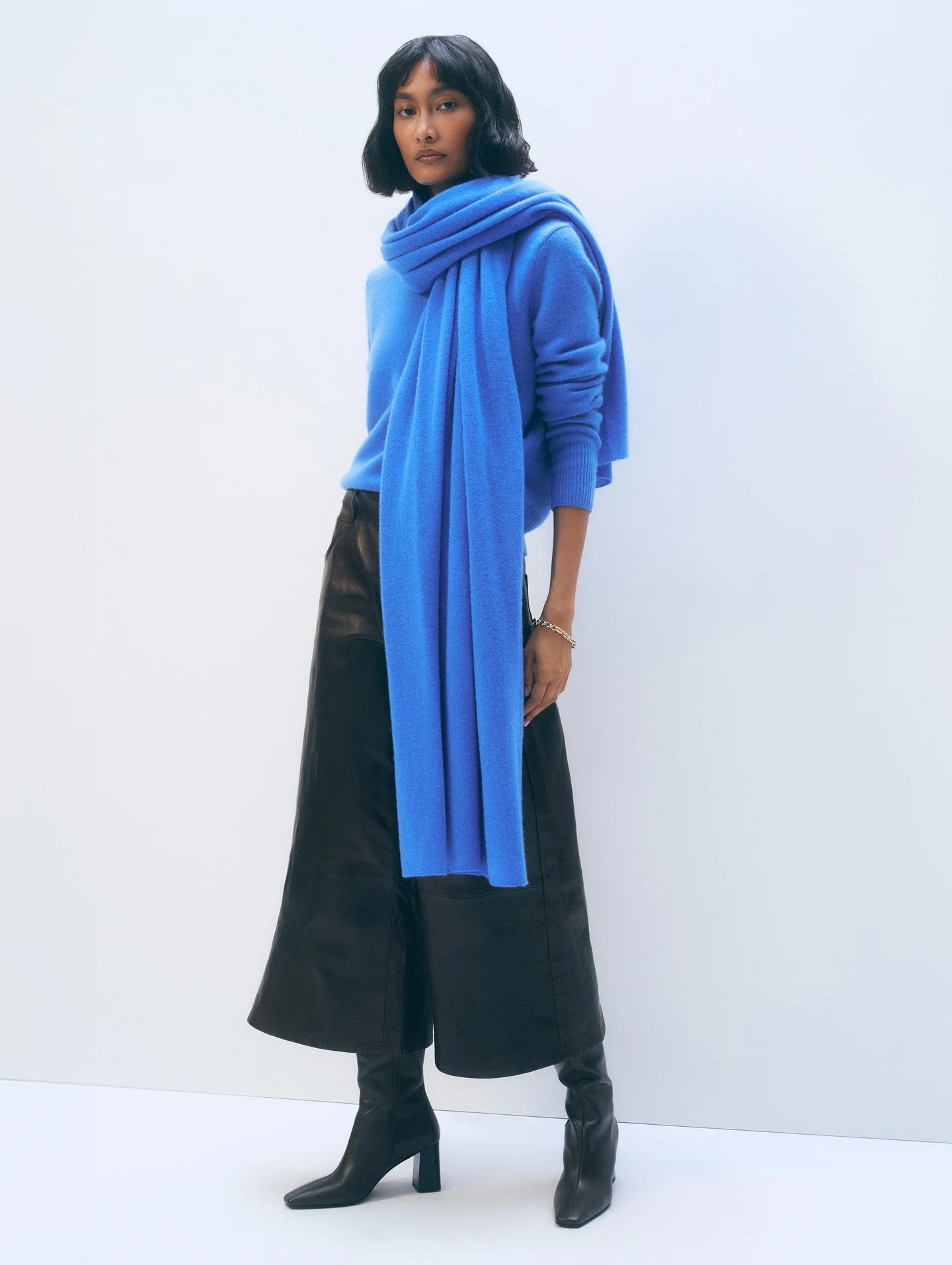 An enduring favorite, this oversized wrap is crafted from cloud-soft cashmere and designed with endless versatility. Measuring nearly seven feet long, it can be styled as a cozy scarf, elegant evening layer, or travel-ready blanket. Available in a mix of classic shades and limited-edition colors, it’s the ultimate cashmere essential.
