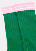 These rib-knit socks are crafted from a soft cotton blend and finished with bold side stripes for a sporty edge. Designed for everyday comfort with a touch of style, they look especially chic pulled up over leggings or styled with sneakers to show off the graphic detail.