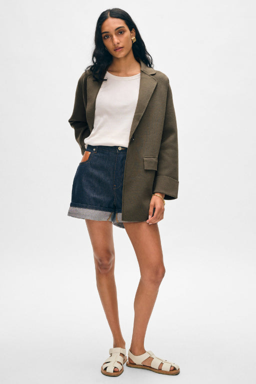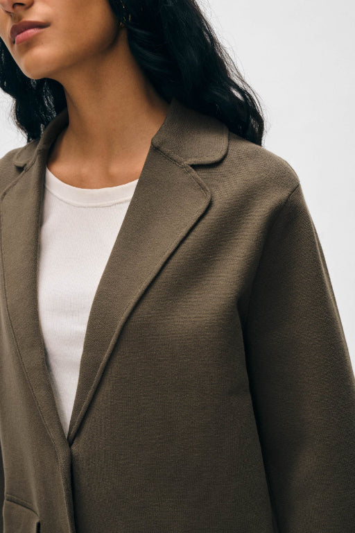 Superfine organic cotton gives this knit blazer added ease, bringing the workwear staple to a more casual place. Boasting an oversized boyfriend fit, this jacket features tailored details like notch lapels, flap pockets, and a back vent. Take a cue from the season’s styling and wear it with the matching Superfine Organic Cotton Tank.