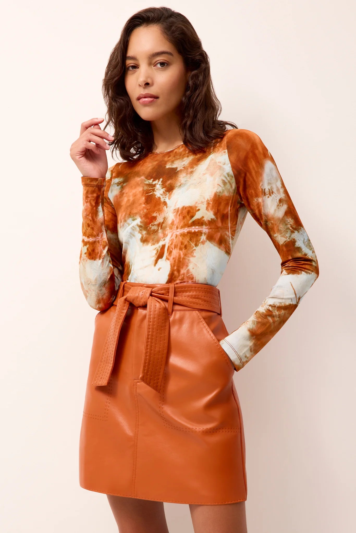 The Hazel Top proves that less is more. Soft and slinky in a fitted jersey knit, it’s cut in a classic crew-neck silhouette and finished in our bold Havana print. Easy to pack and effortless to style, it’s a versatile piece that pairs perfectly with skirts or trousers. We especially love it tucked into the Vallie Skirt in Brandy for a chic, coordinated look.