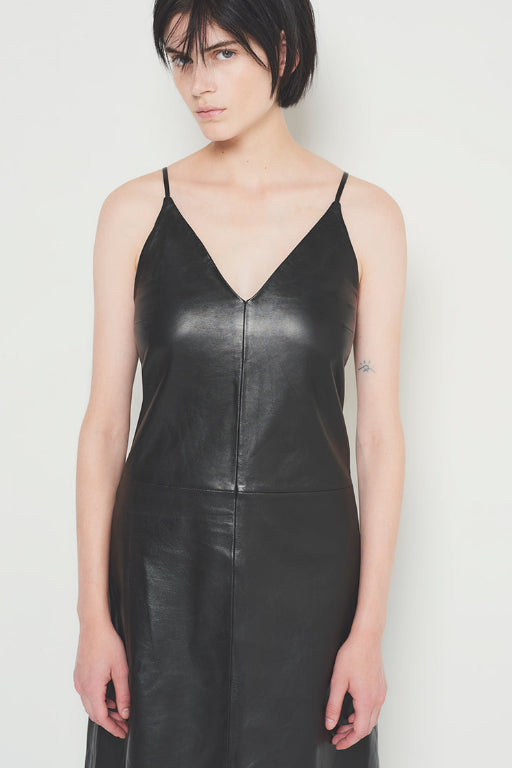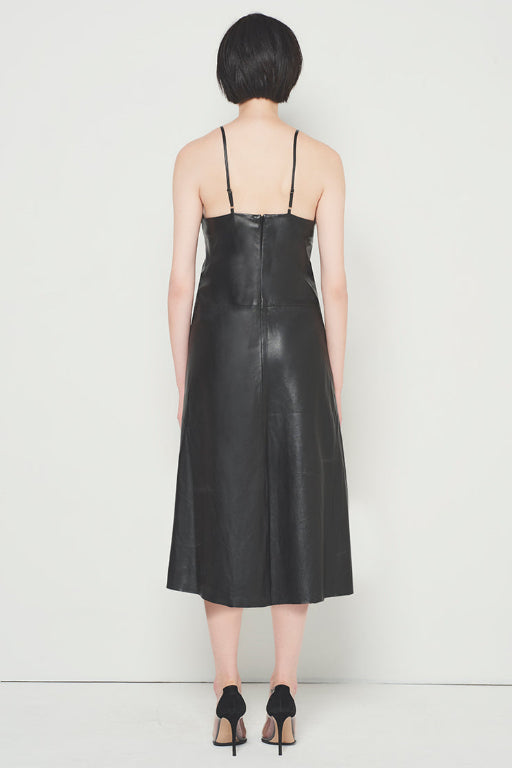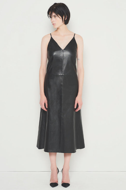 Live out your 90’s dream in our Kat Upcycled Leather Dress, in the classic 90’s slip dress silhouette. Hitting mid-calf, with a classic V-neck design, made in our supple and soft upcycled leather. An invisible center back zipper makes it easy to get in and out.