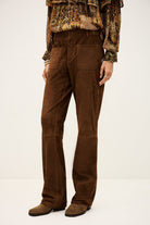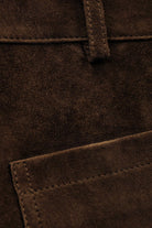 Tailored suede pants designed with front pockets, belt loops, and double topstitch detailing. Cut from stretch fabric for a comfortable fit. Crafted from leather sourced from a tannery certified by the Leather Working Group, reflecting both quality and responsible production.