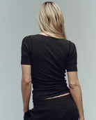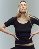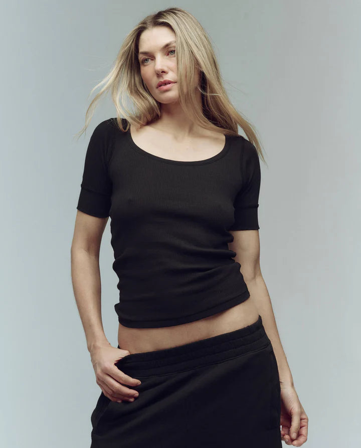 A fresh spin on a vintage-inspired staple, the Baby Rib Ballet Tee is crafted in lightweight ribbed cotton with a close-to-body fit and just the right amount of stretch. Designed with a scooped neckline, delicate binding, and short sleeves, it balances feminine ease with everyday comfort. Each piece is handcrafted in Los Angeles, giving it a unique finish that feels timeless and one of a kind.