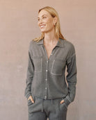 Whip Stitched Pocket Button Sweater in Heather Smoke