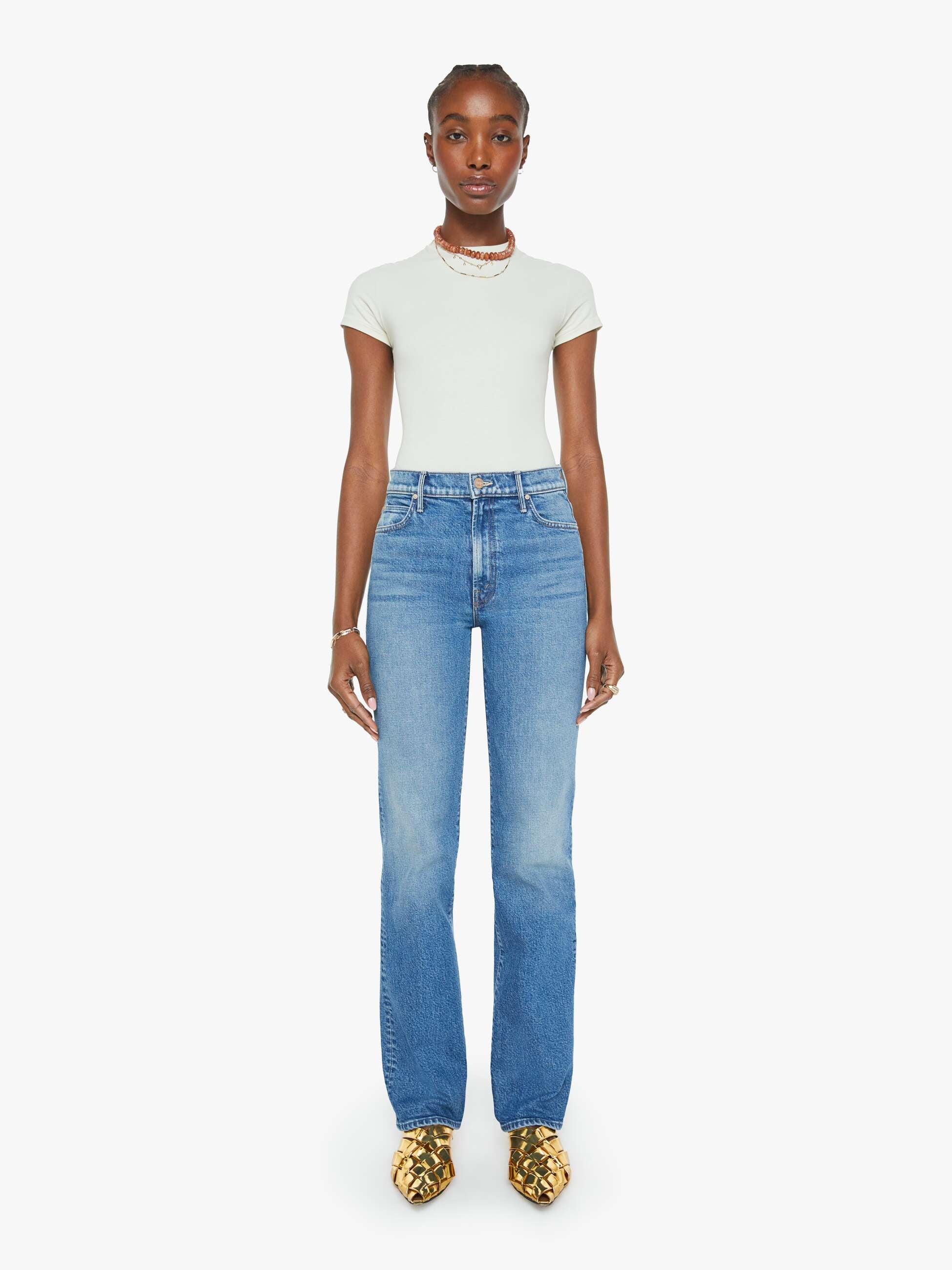 Happy hour, reimagined. This high-rise straight leg jean features a 32-inch inseam and a clean hem for a timeless look. Crafted from stretch denim in Tequila Sunrise—a mid-blue wash with subtle whiskering and knee fading—it’s effortlessly cool and endlessly wearable.