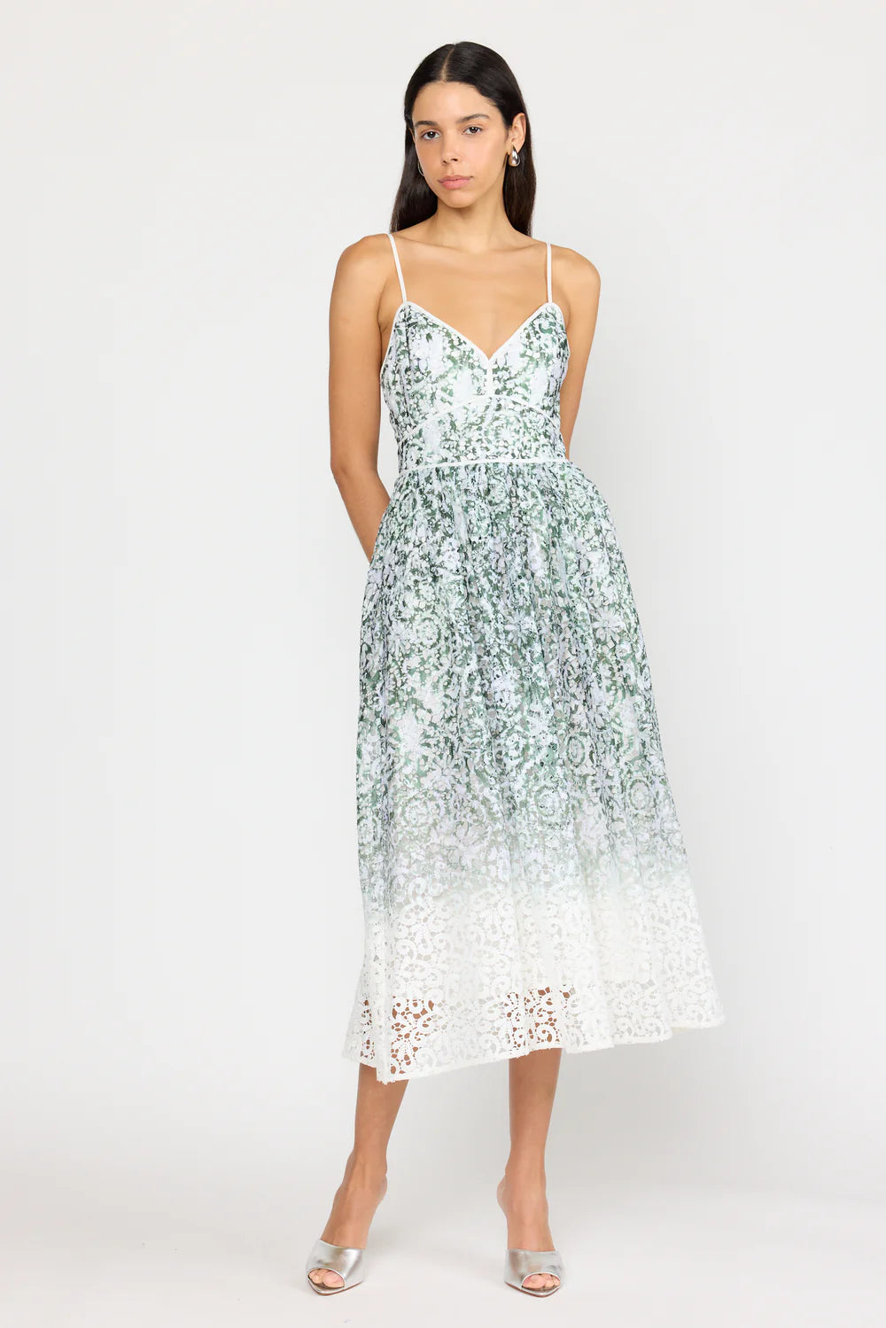 The Leilani Dress returns this summer with fresh details, featuring delicate lace accents and a striking gradient effect along the skirt. Designed with a triangle bodice highlighted by white piping, it flows into a voluminous A-line midi skirt with a breezy, tented shape. A smocked back ensures a comfortable fit, while an invisible zipper offers a seamless finish. Perfect for garden parties, summer celebrations, or any occasion that calls for a bold pop of color.