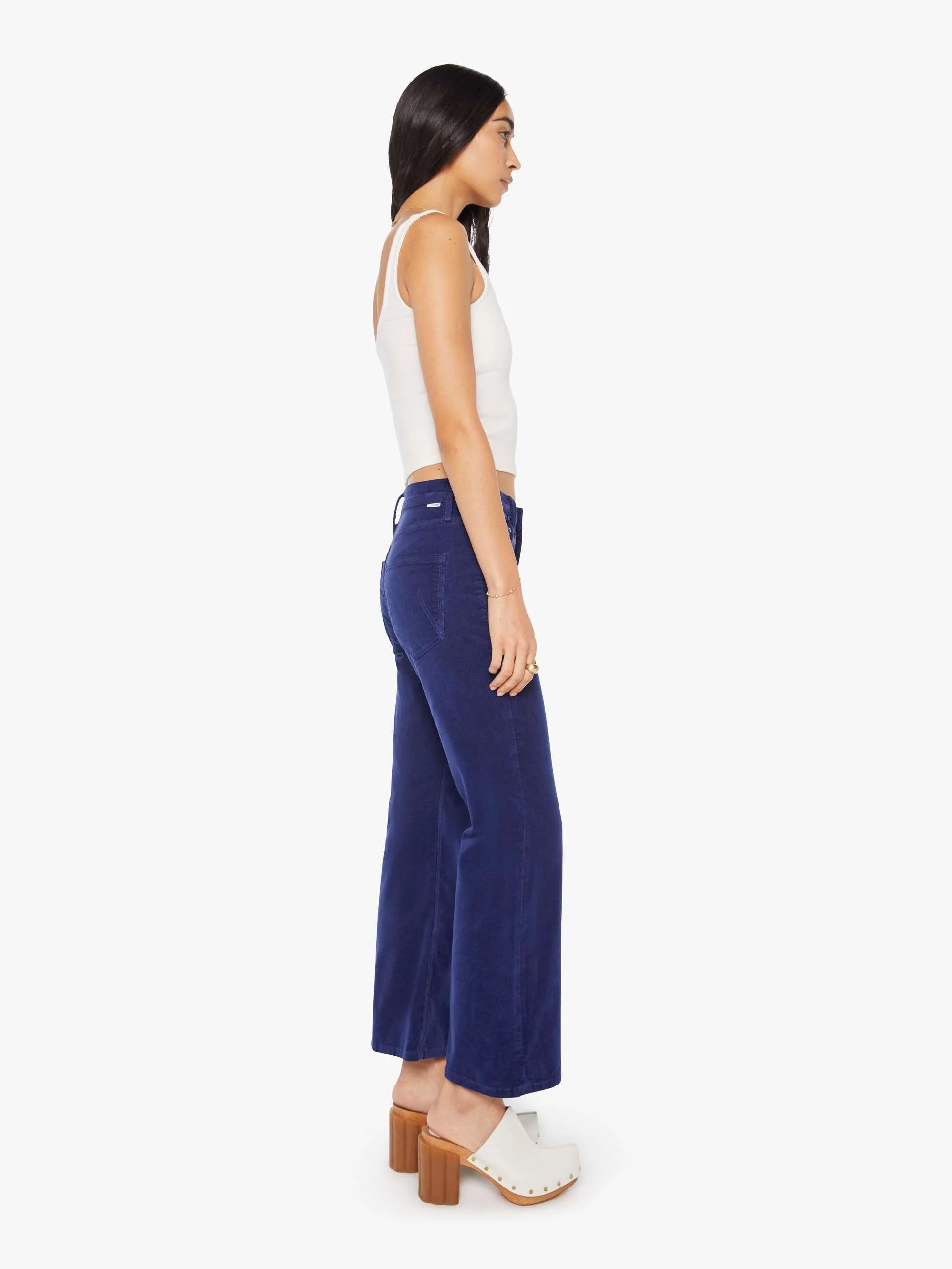 True blue. This high-rise bootcut features a relaxed leg and a 28.25-inch inseam with a clean hem for a streamlined silhouette. Crafted from a soft stretch cotton blend, Twilight Blue is a rich navy micro-corduroy finished with tonal hardware for a sleek, modern look.