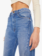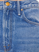 A little treat from SNACKS!βa collection of bold, exaggerated silhouettes with a non-era-specific attitude. Rolling In The Dough features a super high waist, a loose wide leg with a curved outer seam, and a long 33.5-inch inseam with a clean hem. Made from a rigid recycled cotton blend in a mid-blue wash, this pair is finished with a pretzel-detailed button and candy-inspired interior rivets. Would you like a treat?