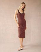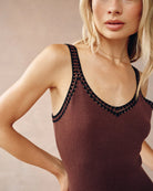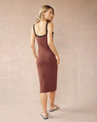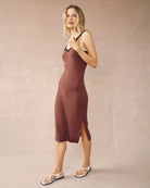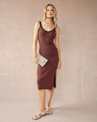 Designed with a flattering, body-skimming silhouette and modest midi length, this dress offers just the right balance of sultry and sophisticated. Intricate crochet trim along the neckline and straps adds an artisanal touch to the otherwise minimalist design.