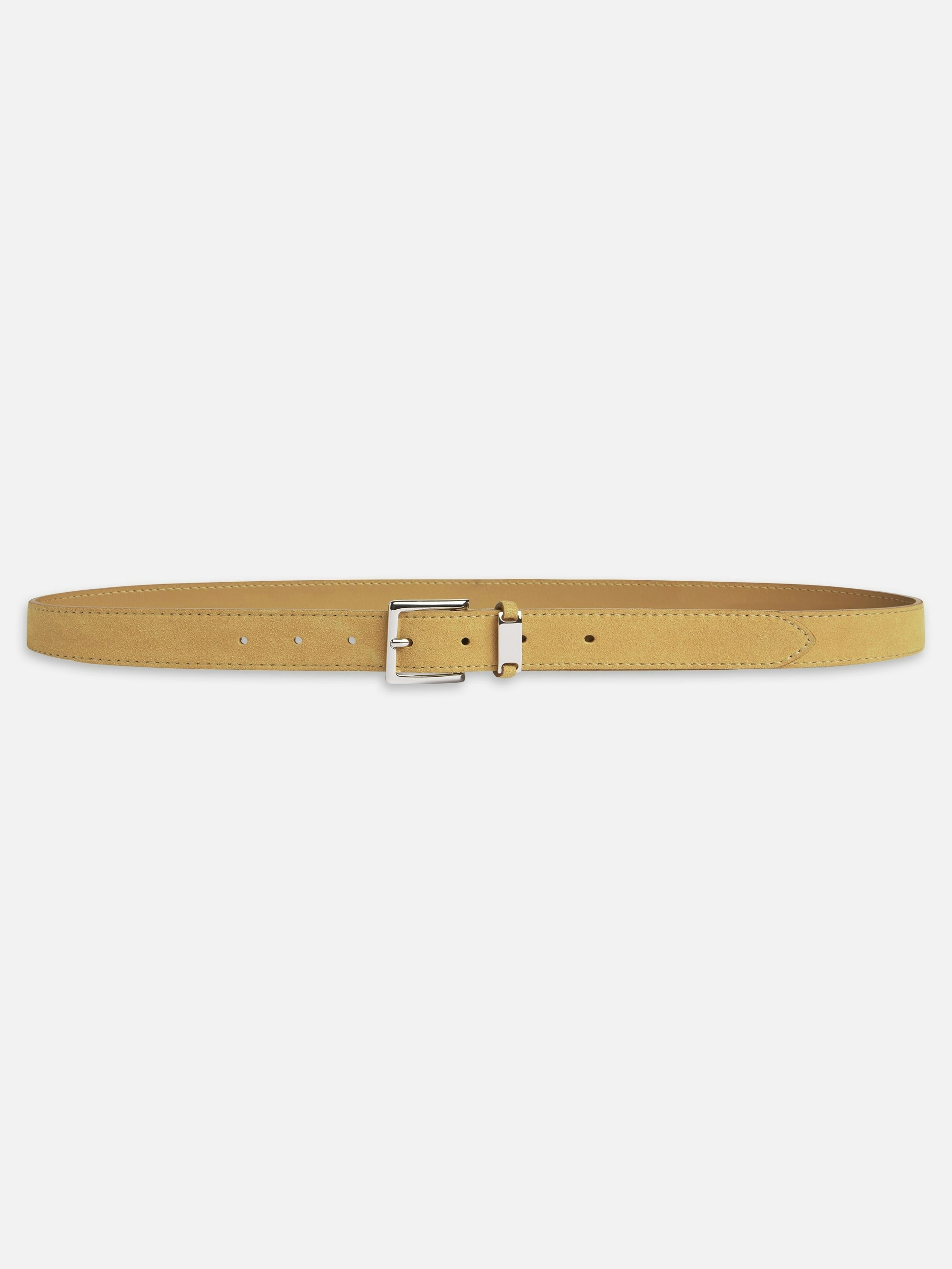 Made from luxurious camel suede and featuring a squared silver buckle, this belt adds a polished touch to denim, trousers, or crisp shirting. Crafted from 100% leather, it boasts clean edges and a soft, smooth texture for a refined finish.