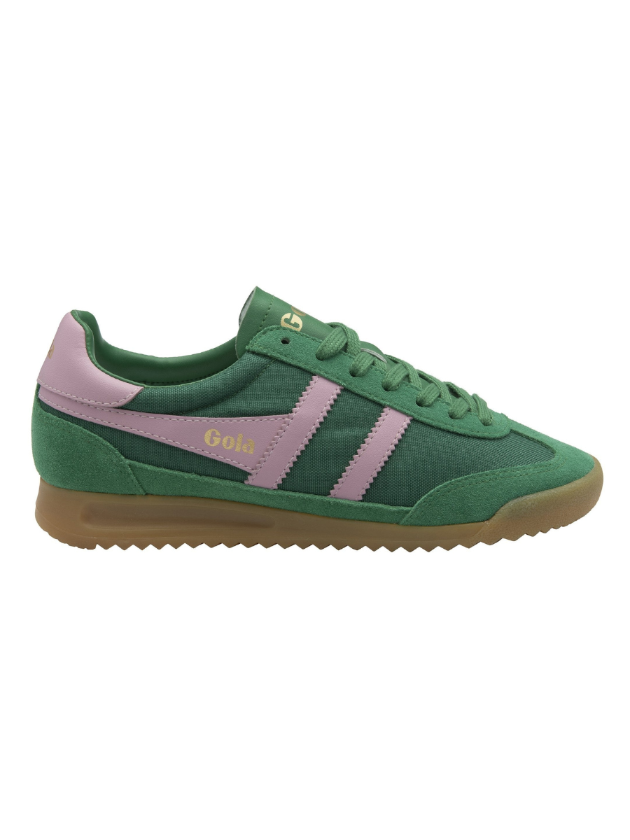 The Gola Tornado Sneaker channels retro terrace style with a bold, old-school edge. Designed with a heavy-weave nylon upper in emerald and matching suede trims at the toe, heel, and lace facing, it’s finished with a candy-colored wingflash side trim with sawtooth edges. Set on a slight wedge gum sole, this sneaker delivers the full vintage-inspired package—sporty, stylish, and effortlessly cool.