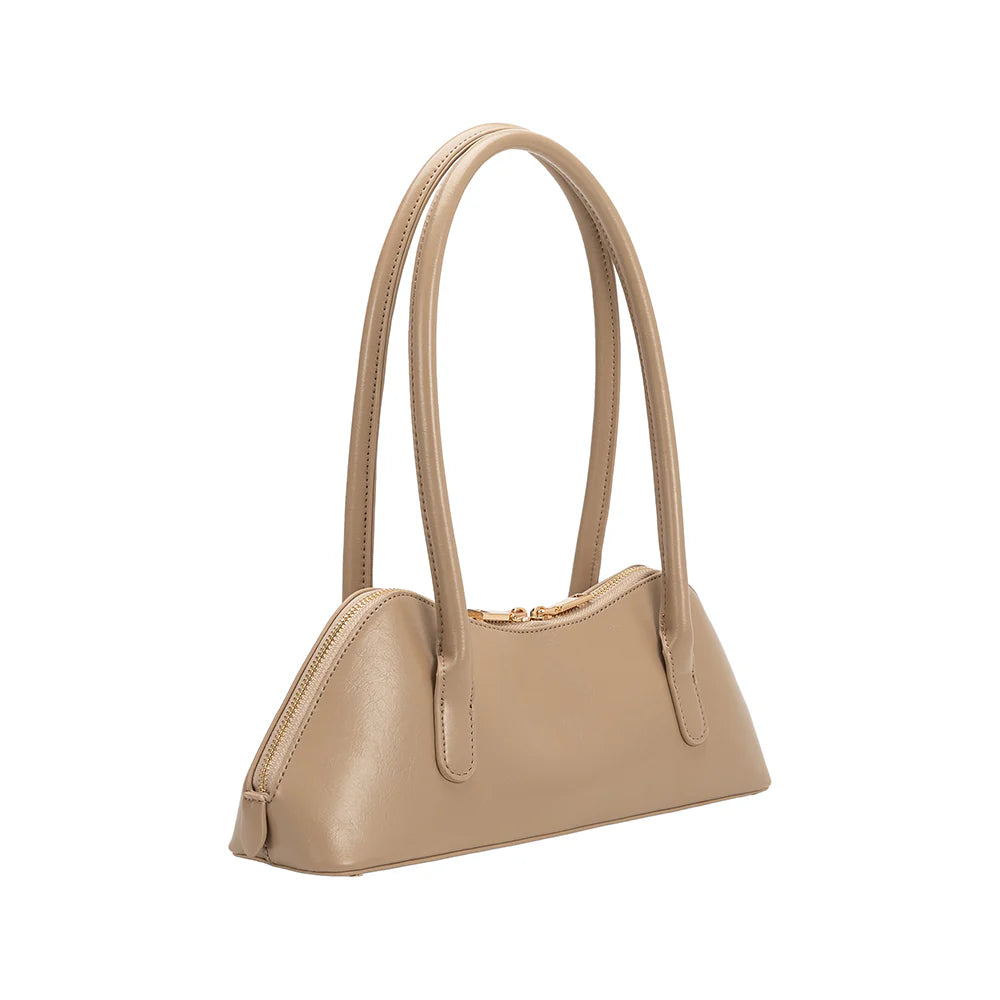 Discover effortless elegance with the Dakota Shoulder Bag. Its curved top and sleek design add a modern flair, while the double handles offer both versatility and chic appeal. Compact yet roomy, this small bag is ideal for any occasion, making it a must-have addition to your wardrobe.