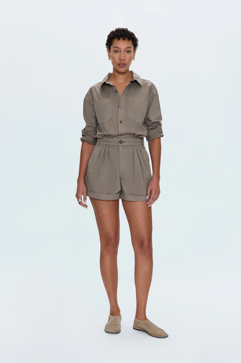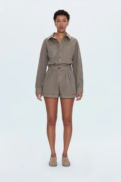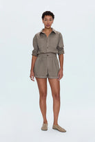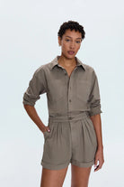 Meet the Archie Long Sleeve Romper in a beautifully soft moss hue. Designed with pleated shorts and crafted from breathable, lightweight fabric, it’s the perfect balance of elevated style and everyday comfort. Effortlessly versatile, this piece transitions from day to night with ease—pair it with heels for a polished evening look or sandals for casual chic. A wardrobe staple in the making.