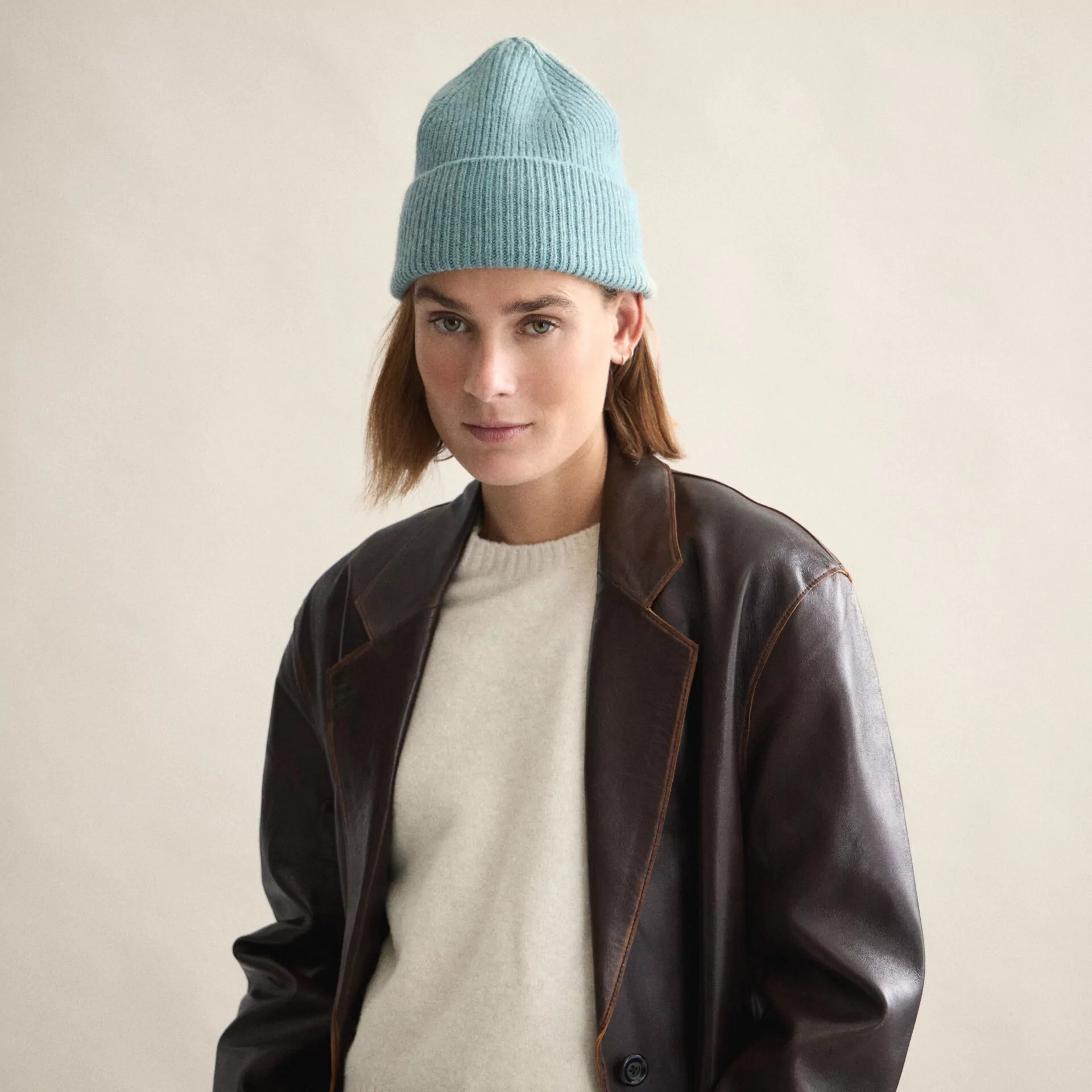 This beanie features a timeless ribbed silhouette, offering both style and function. Knit from ultra-soft wool, it delivers exceptional warmth and comfort—a luxurious cold-weather essential you’ll reach for all season long.