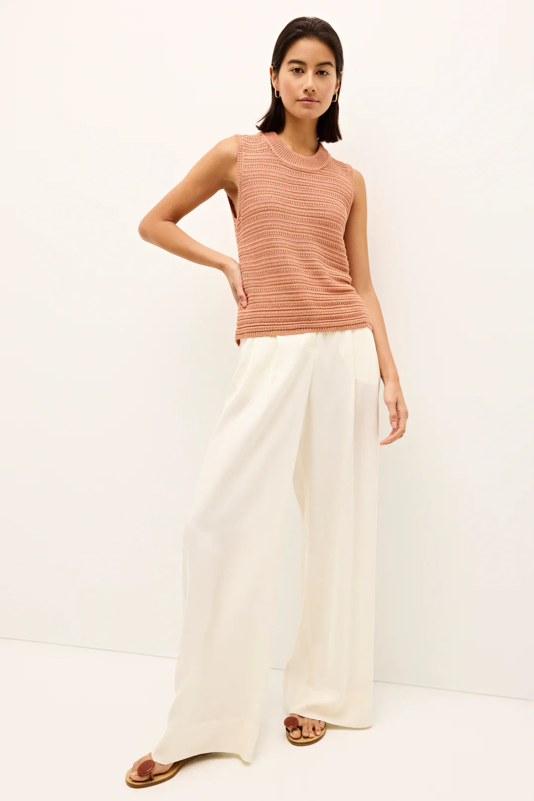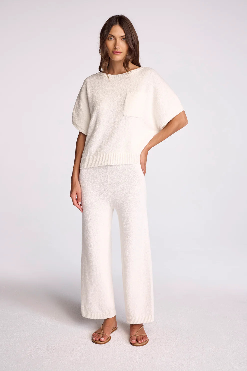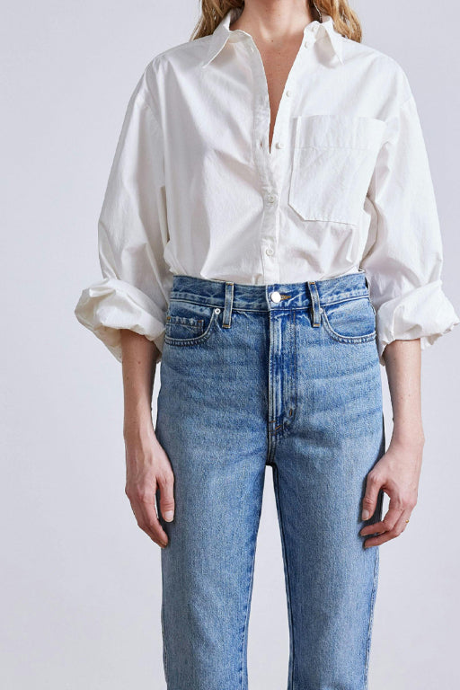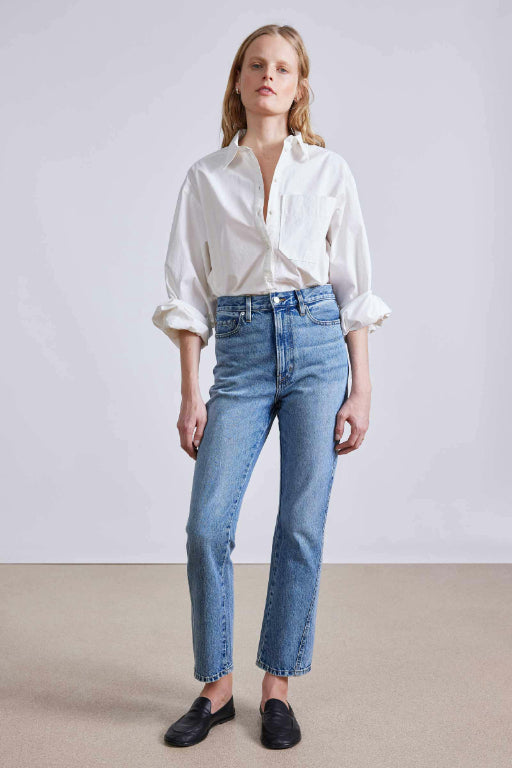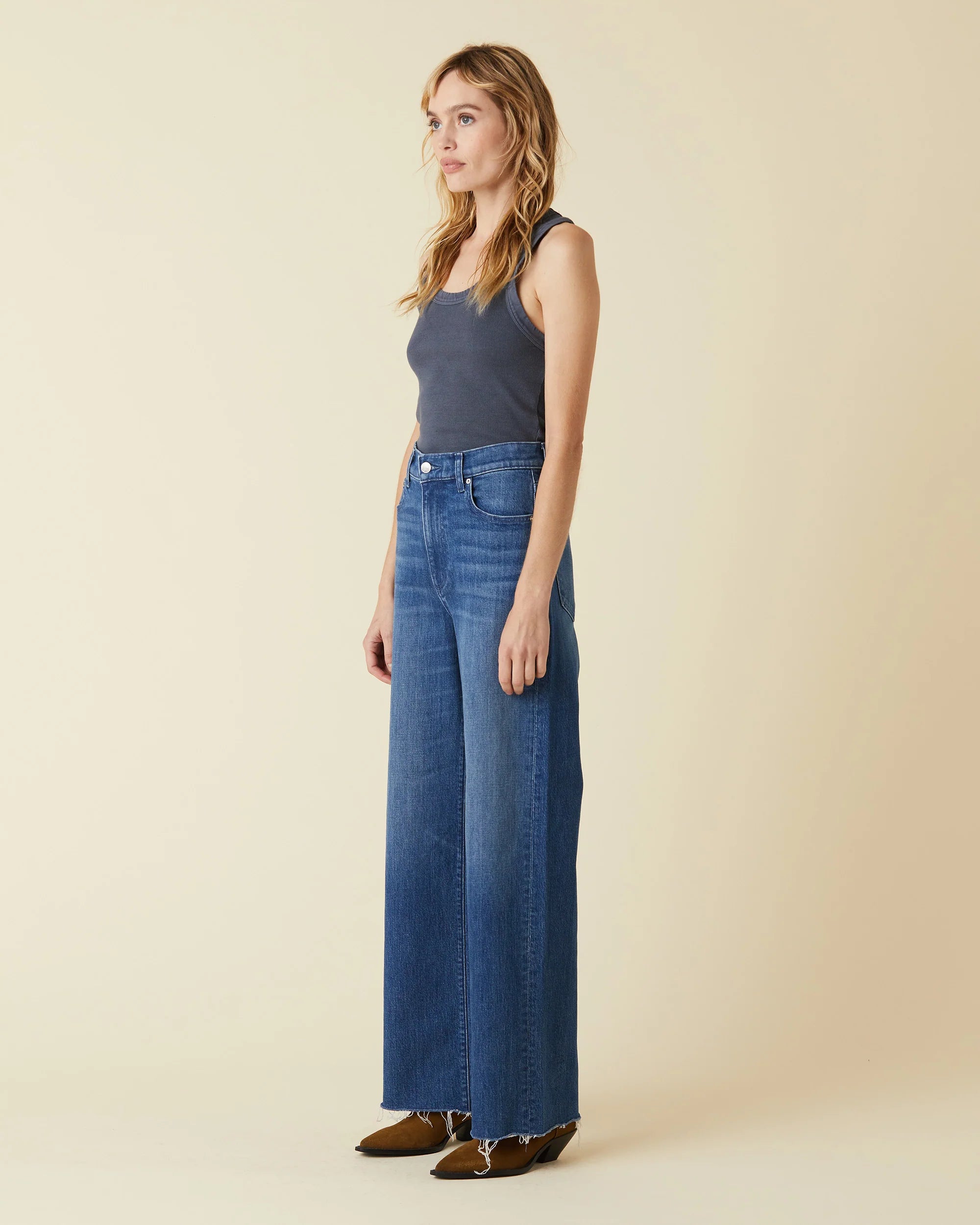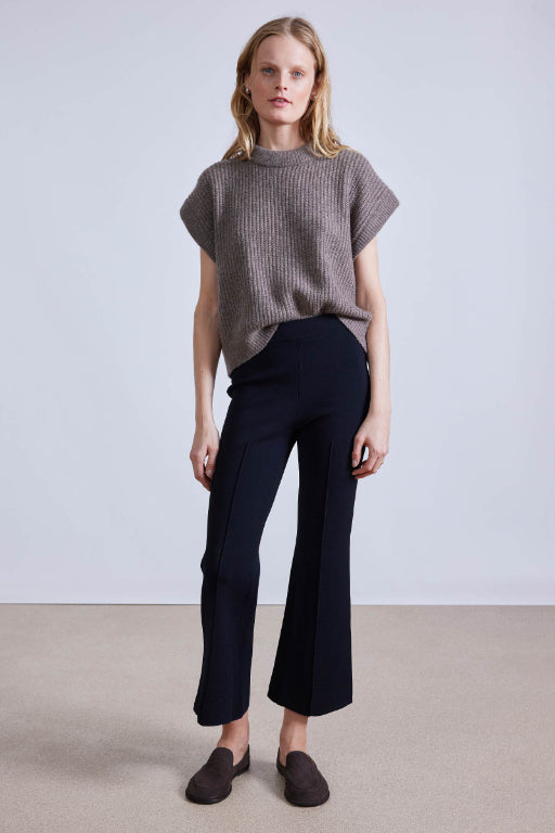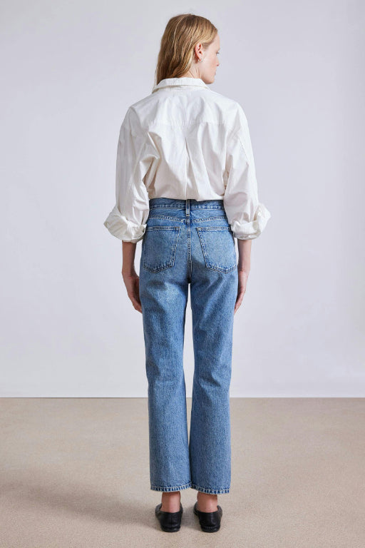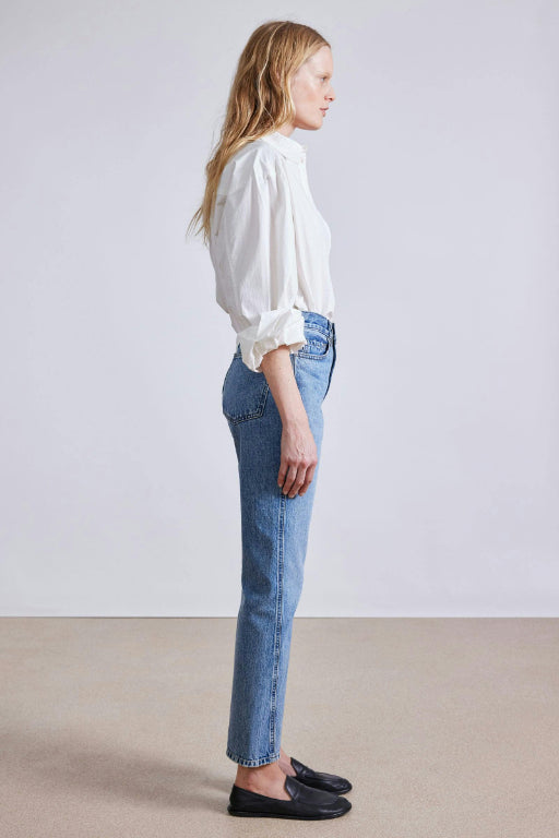 Organic Cotton Blend Rib Trim V-Neck Sweater in Azure Blue