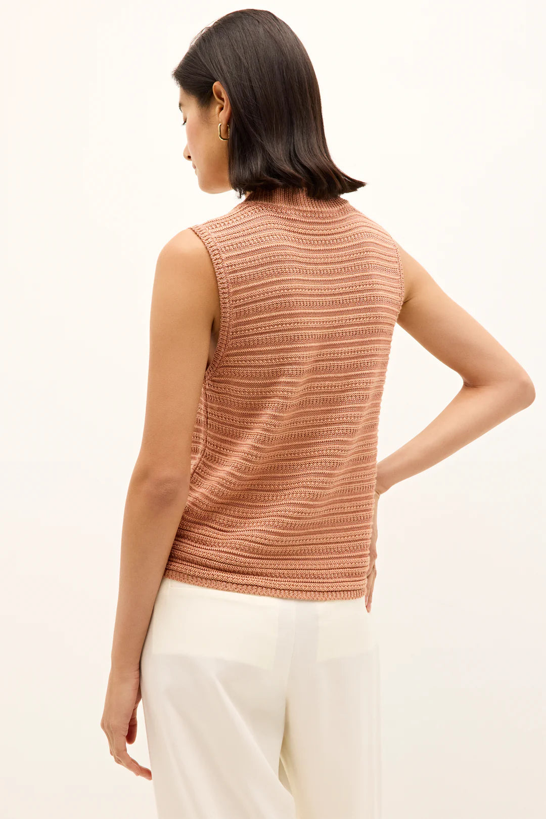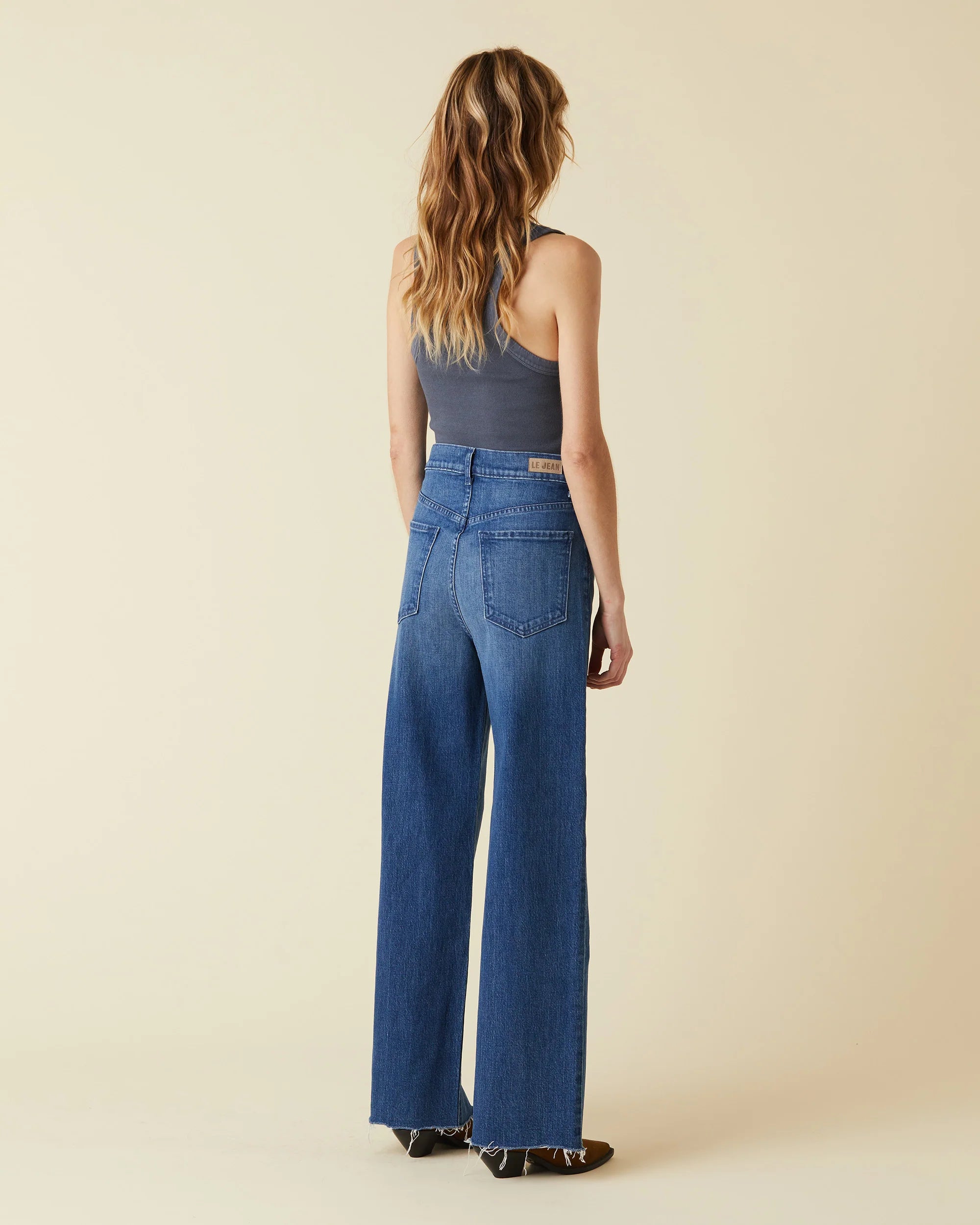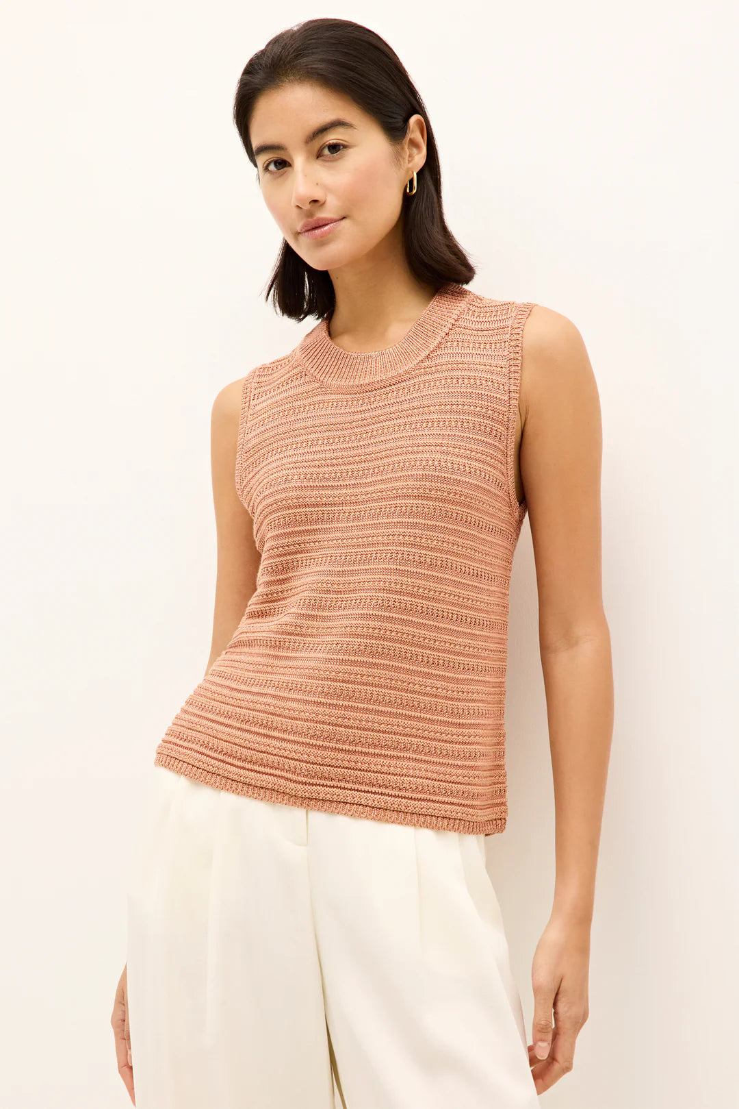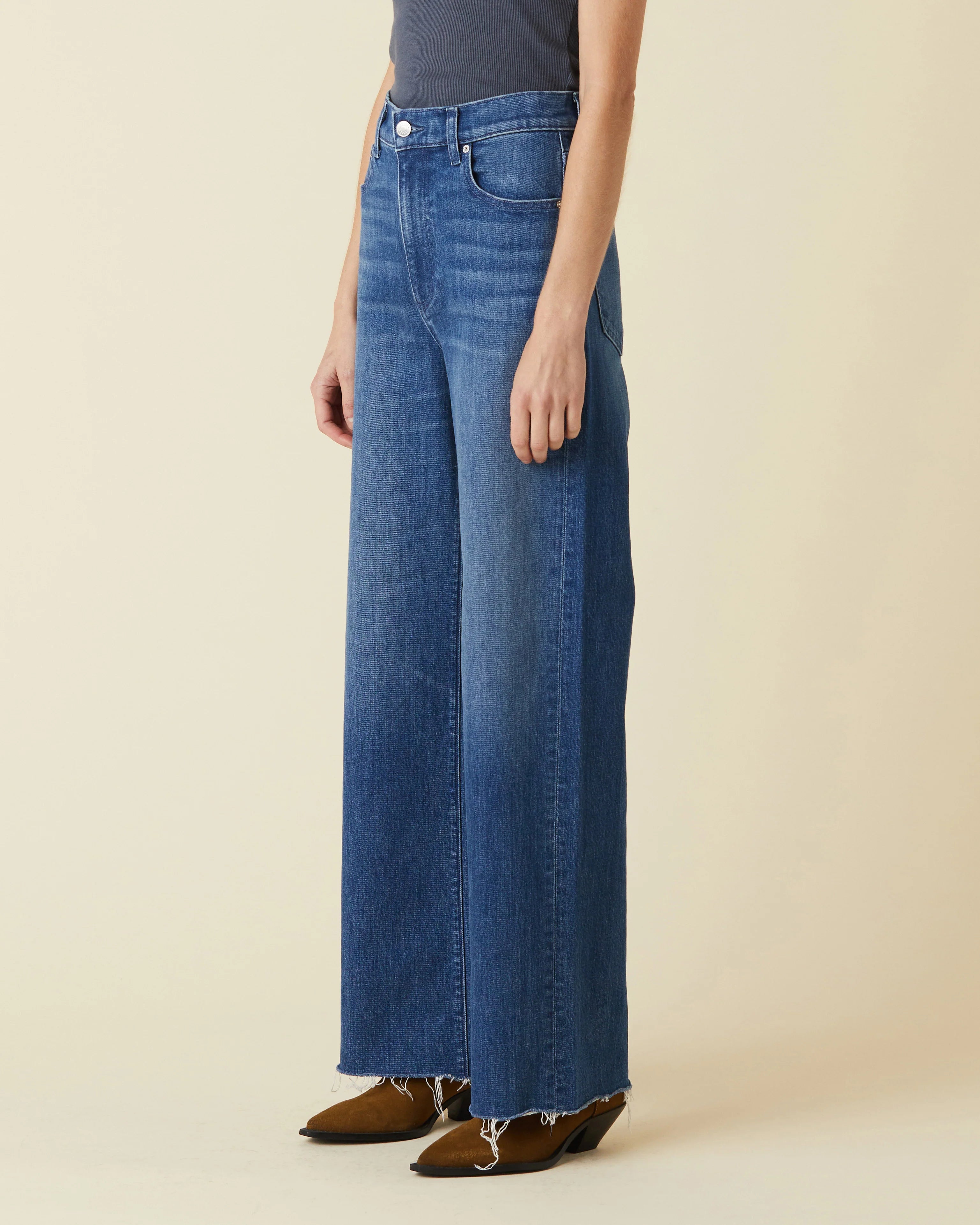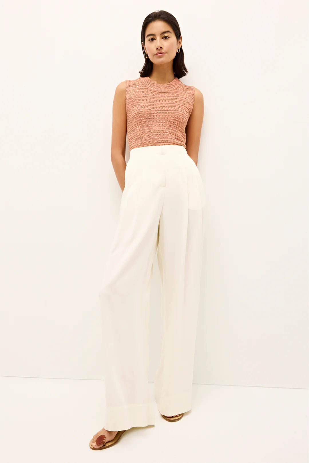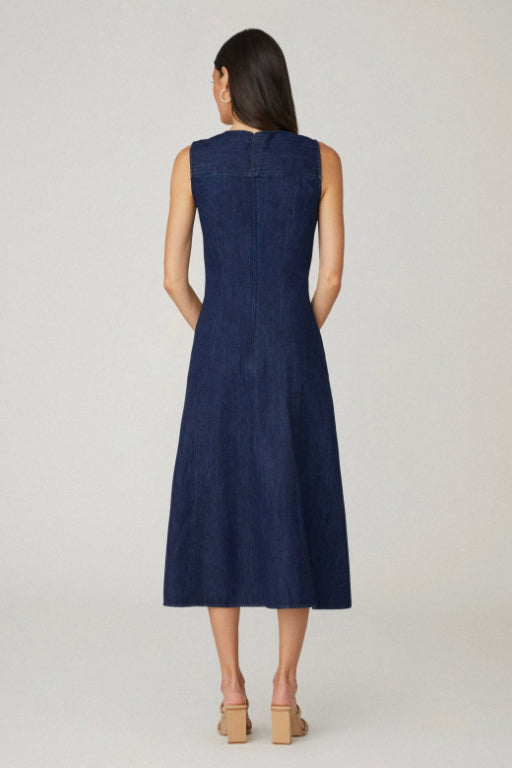 Organic Cotton Blend Rib Trim V-Neck Sweater in Azure Blue