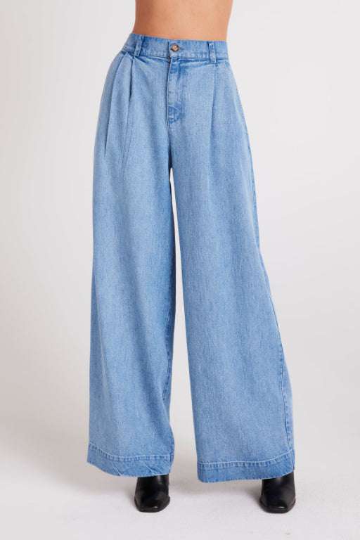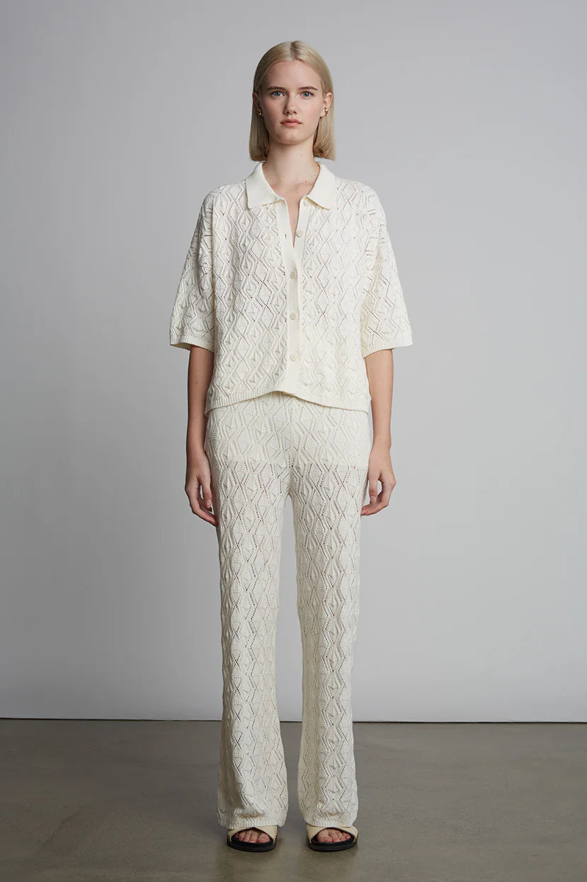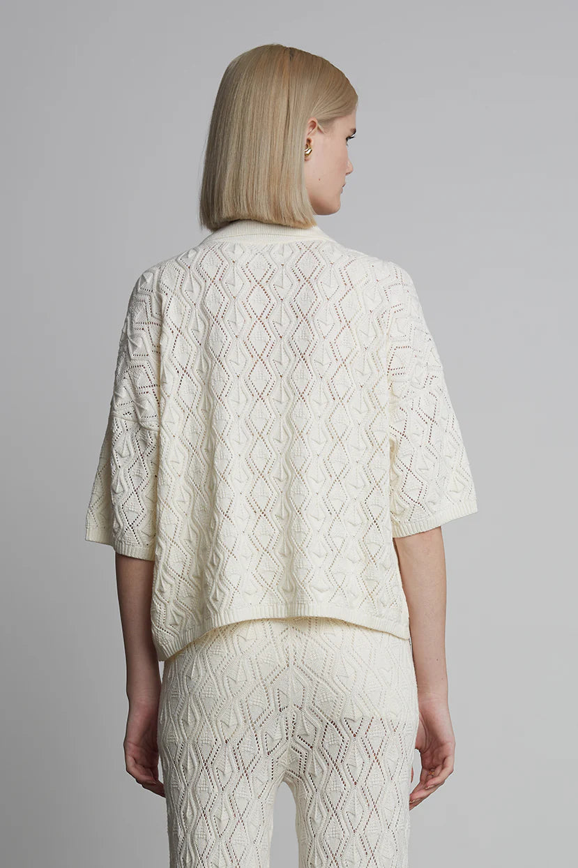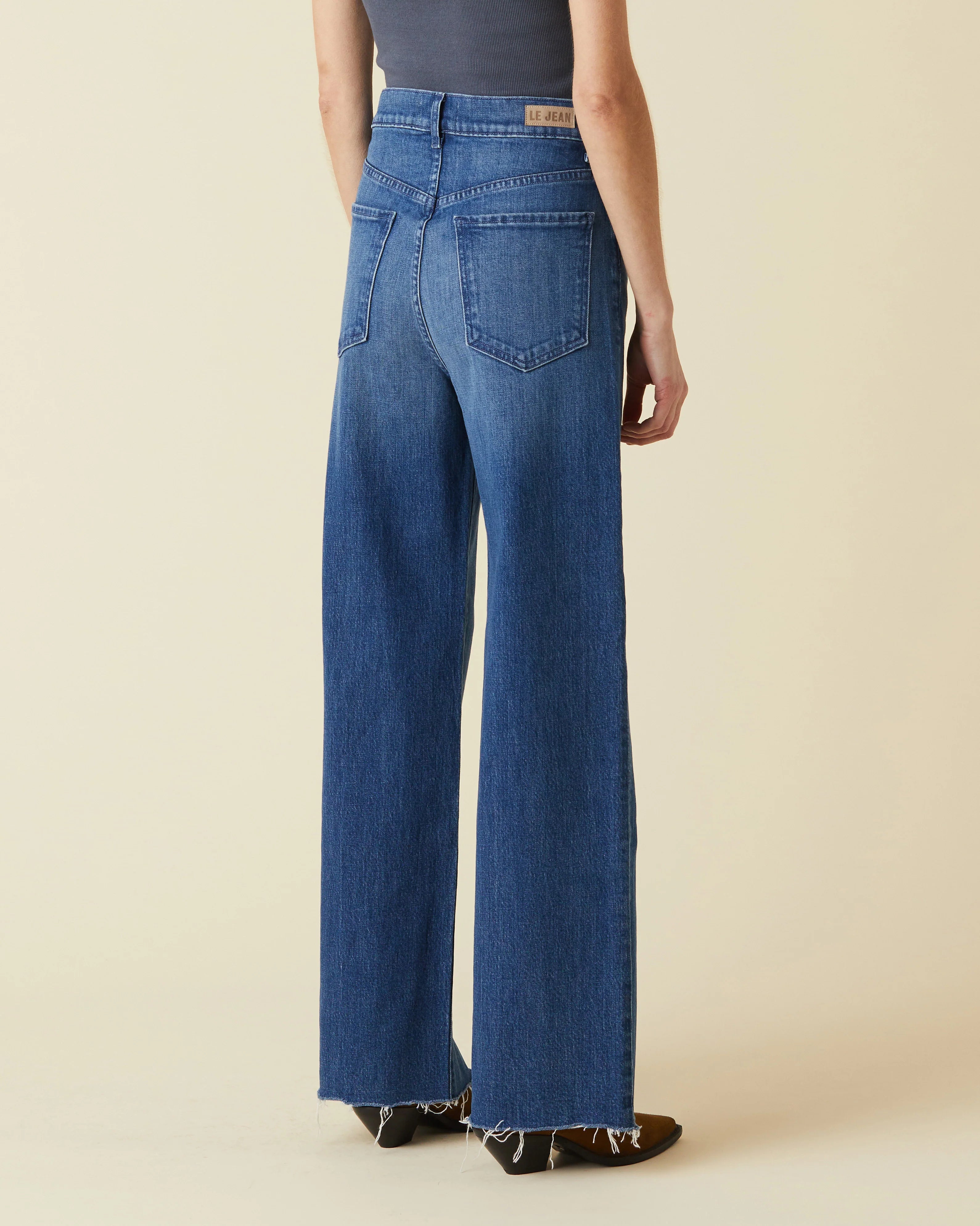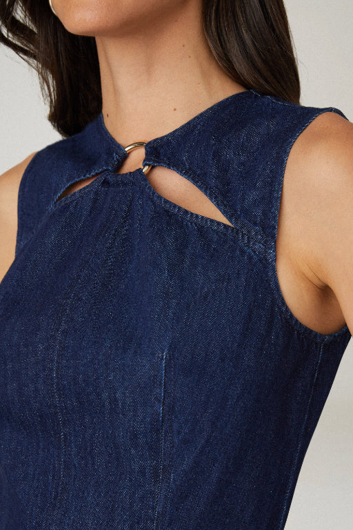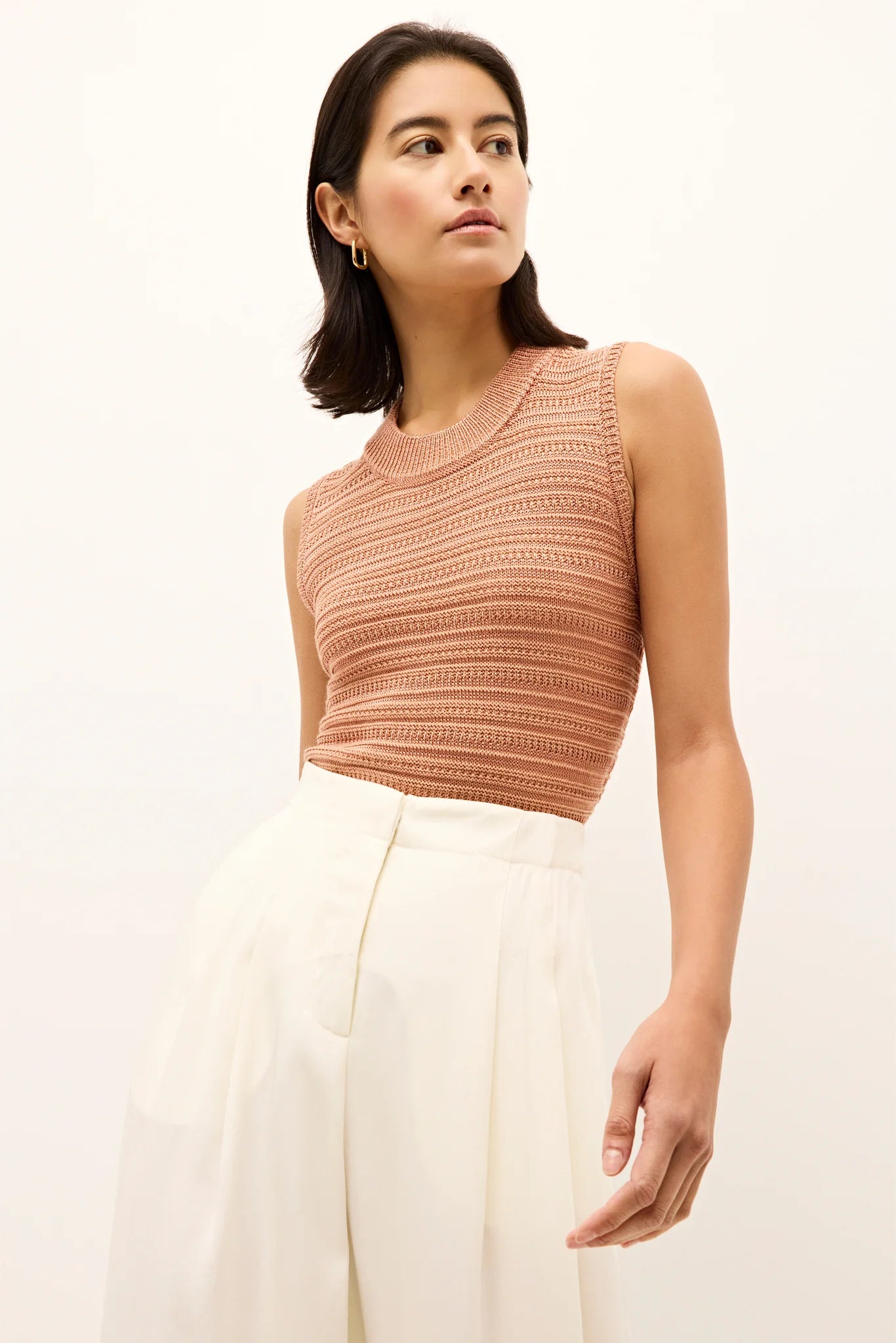 Organic Cotton Blend Rib Trim V-Neck Sweater in Azure Blue