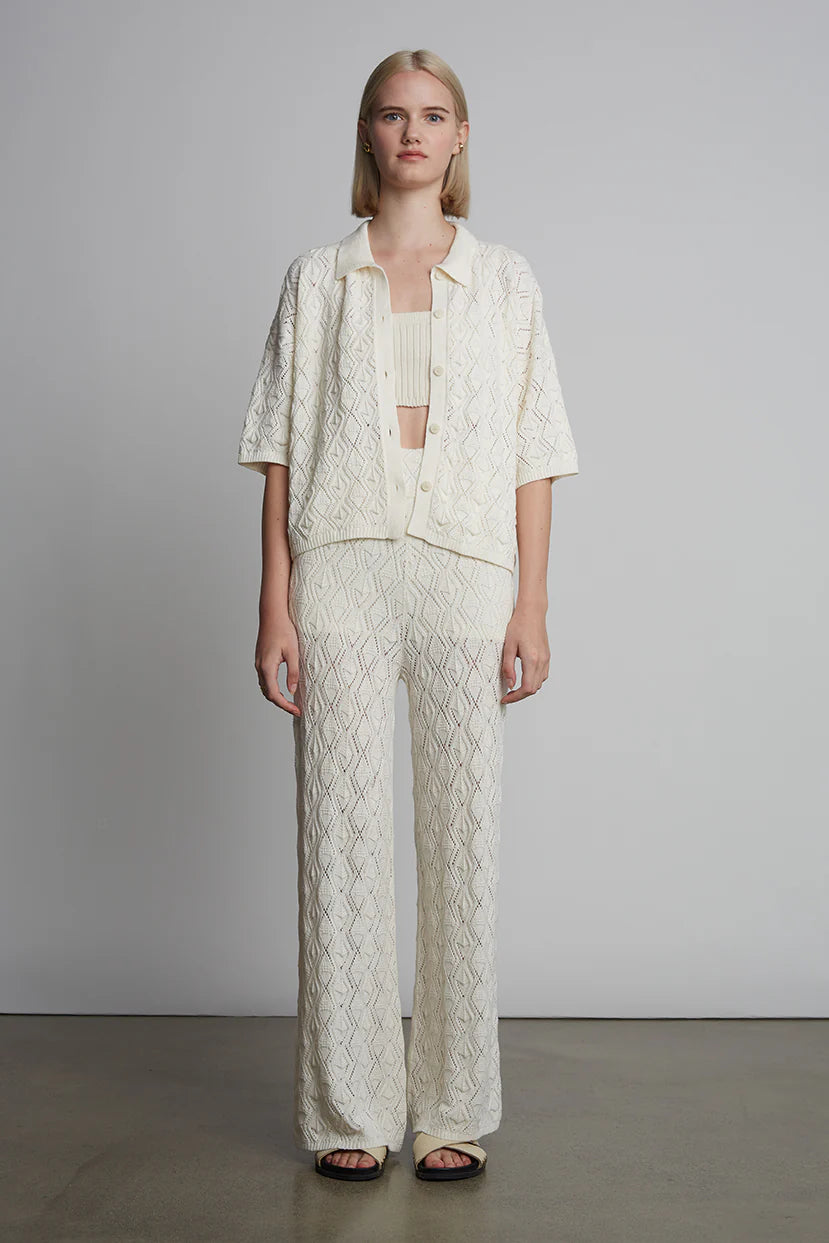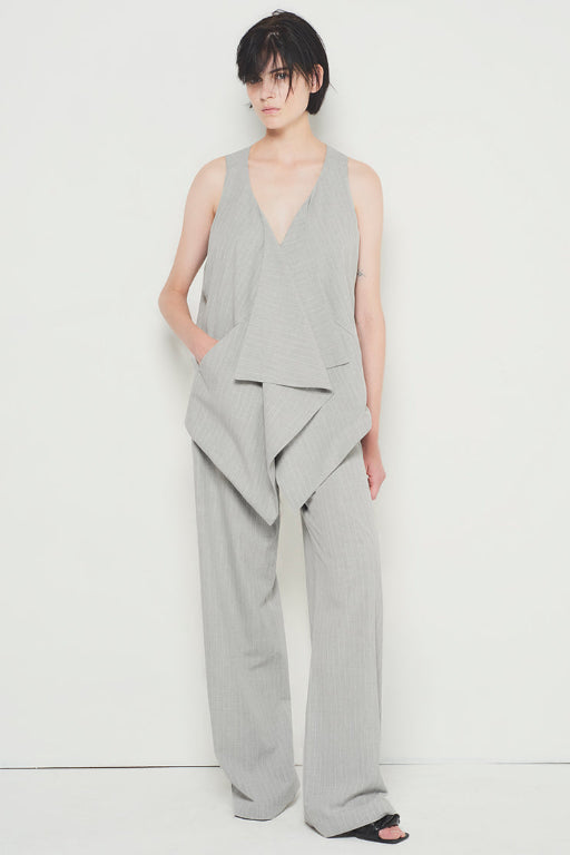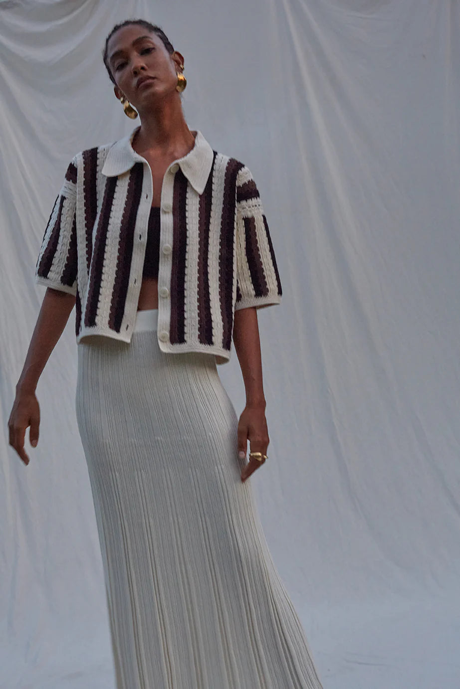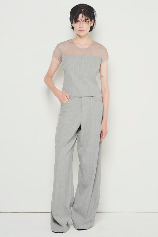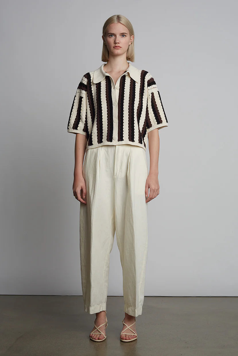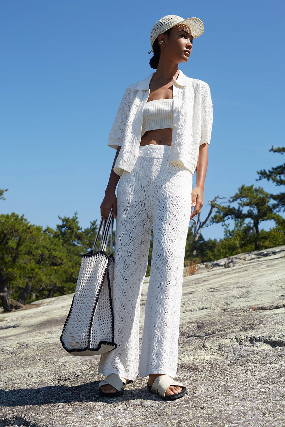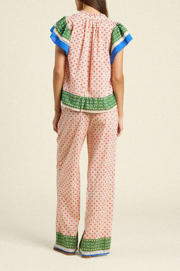 Organic Cotton Blend Rib Trim V-Neck Sweater in Azure Blue