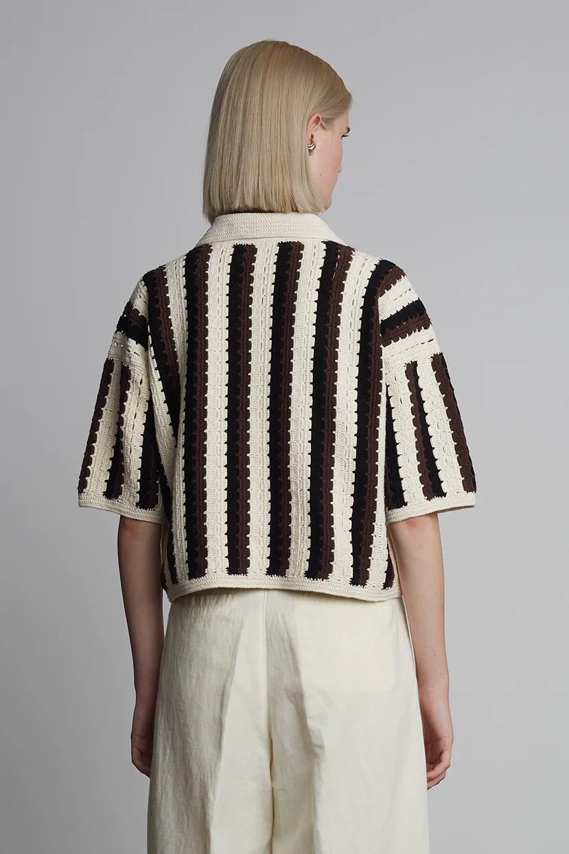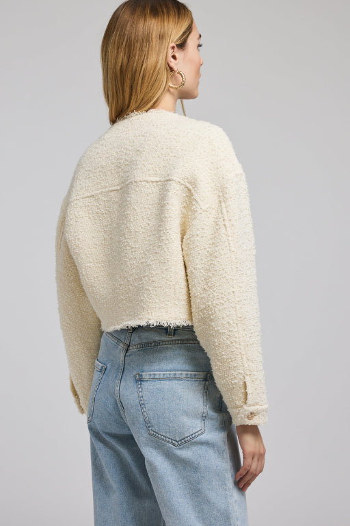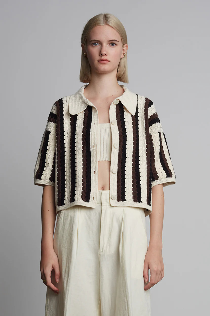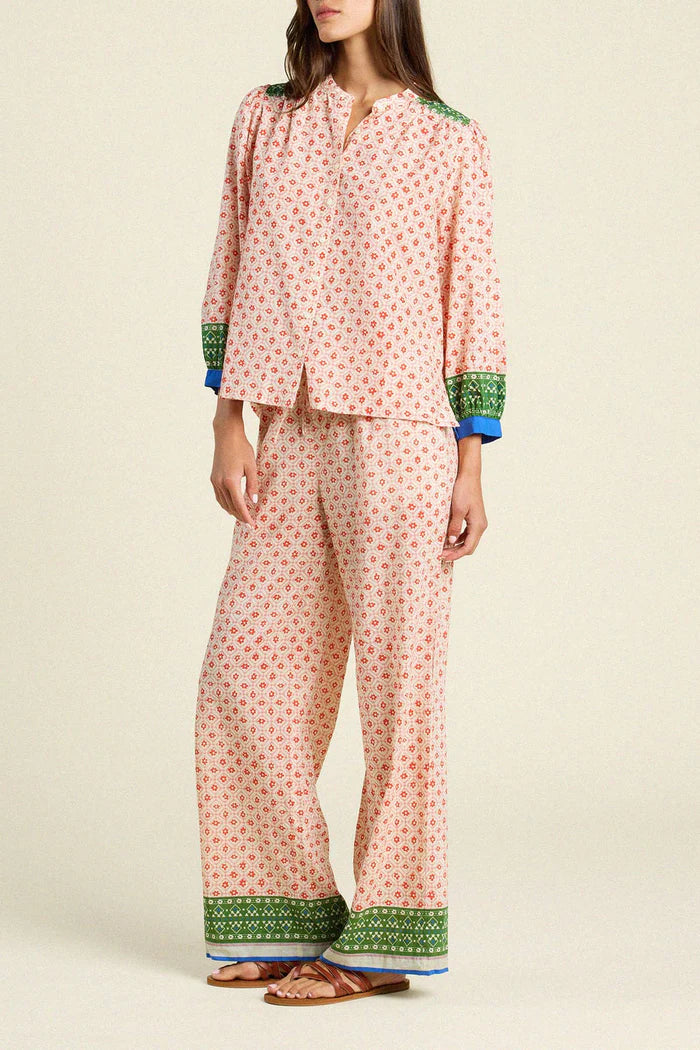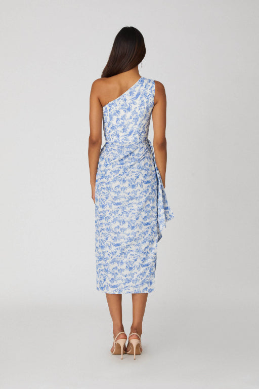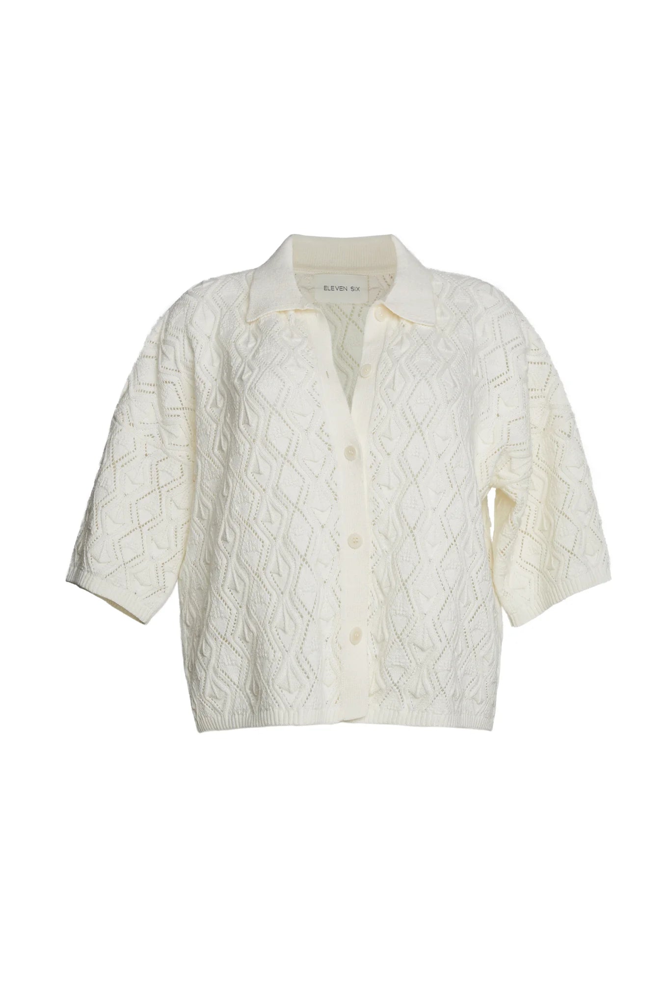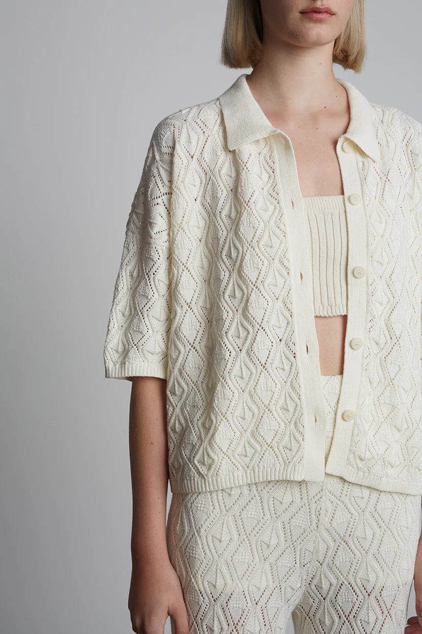 Organic Cotton Blend Rib Trim V-Neck Sweater in Azure Blue