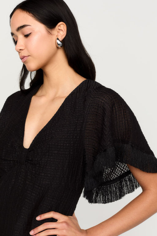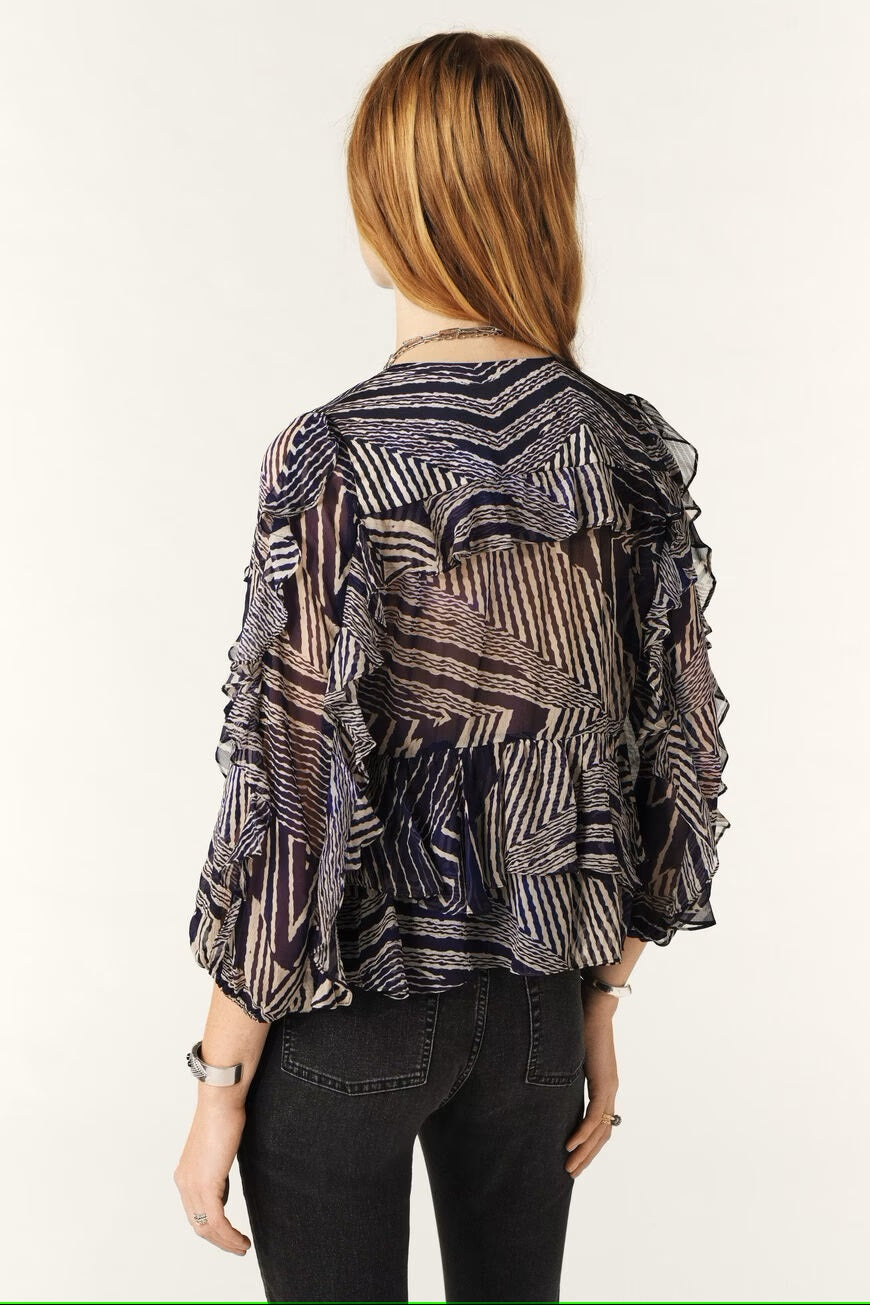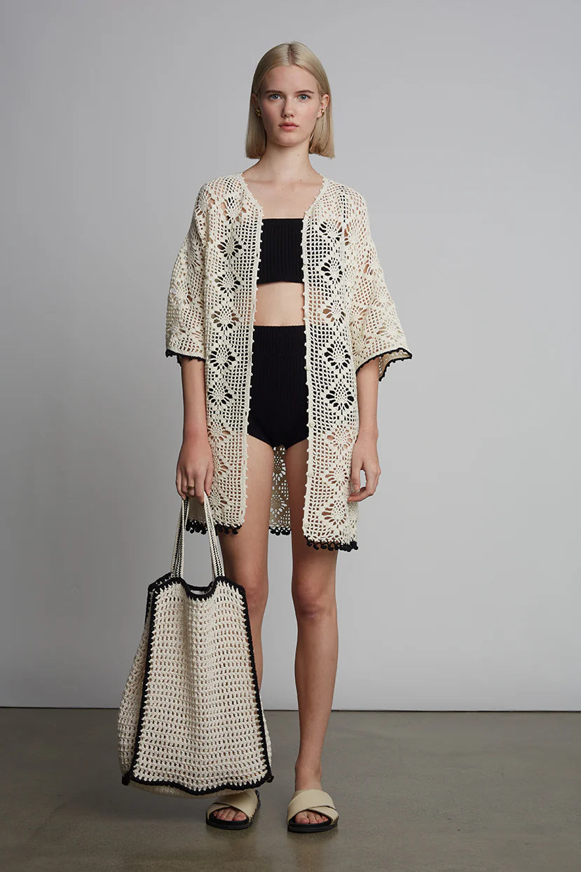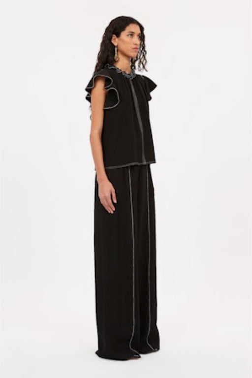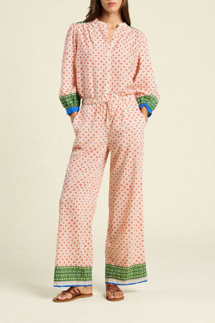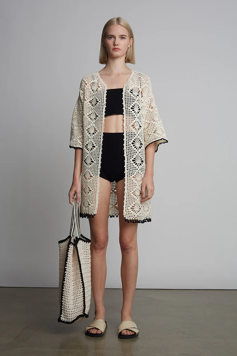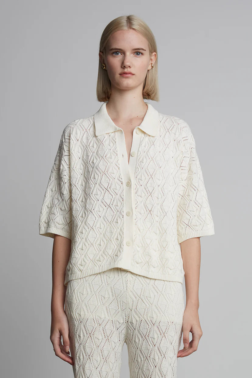 Organic Cotton Blend Rib Trim V-Neck Sweater in Azure Blue