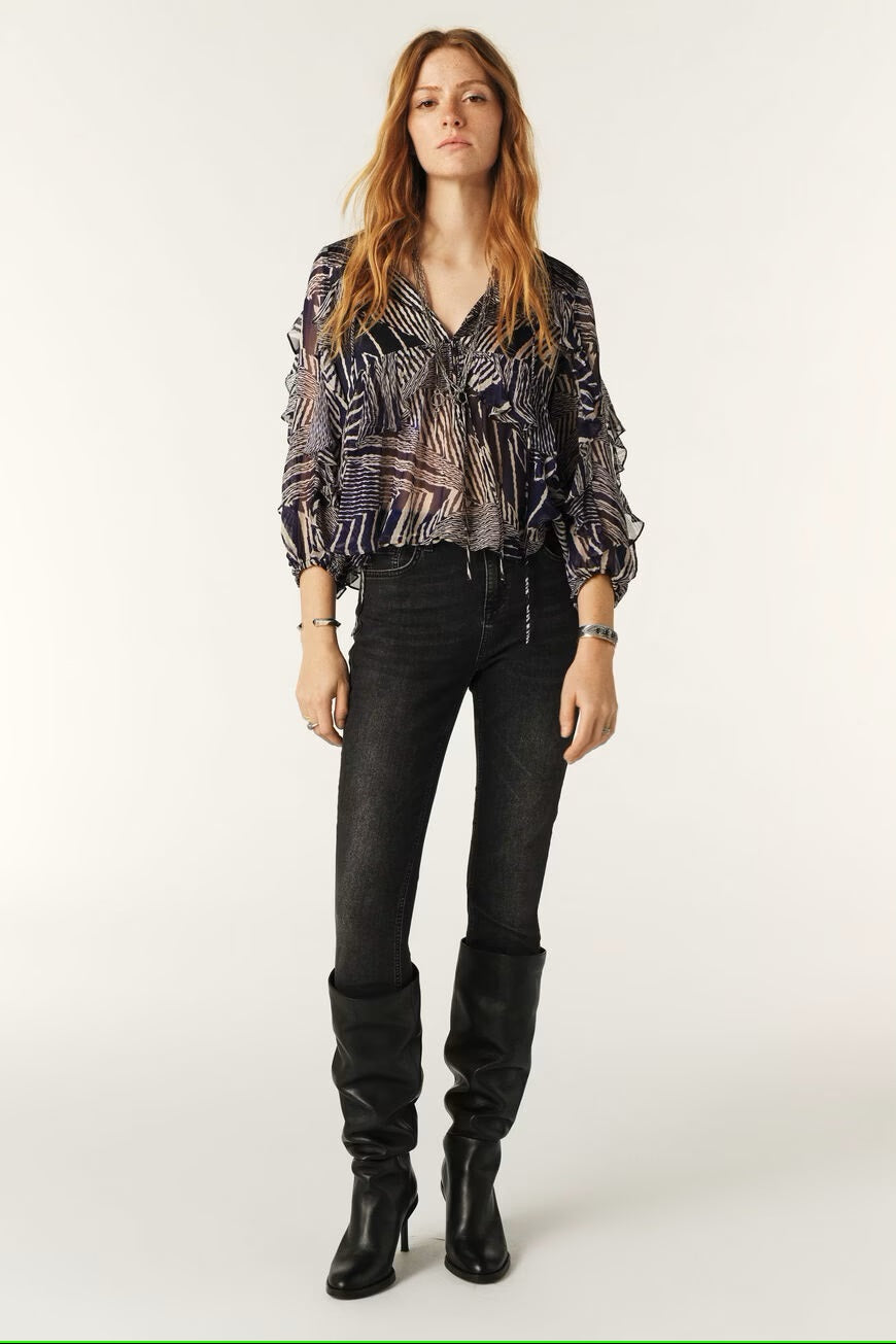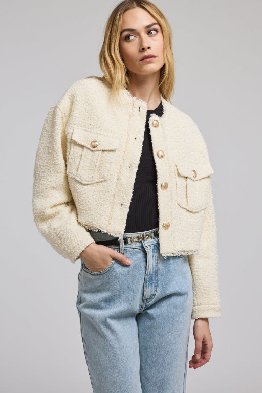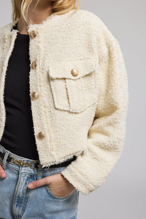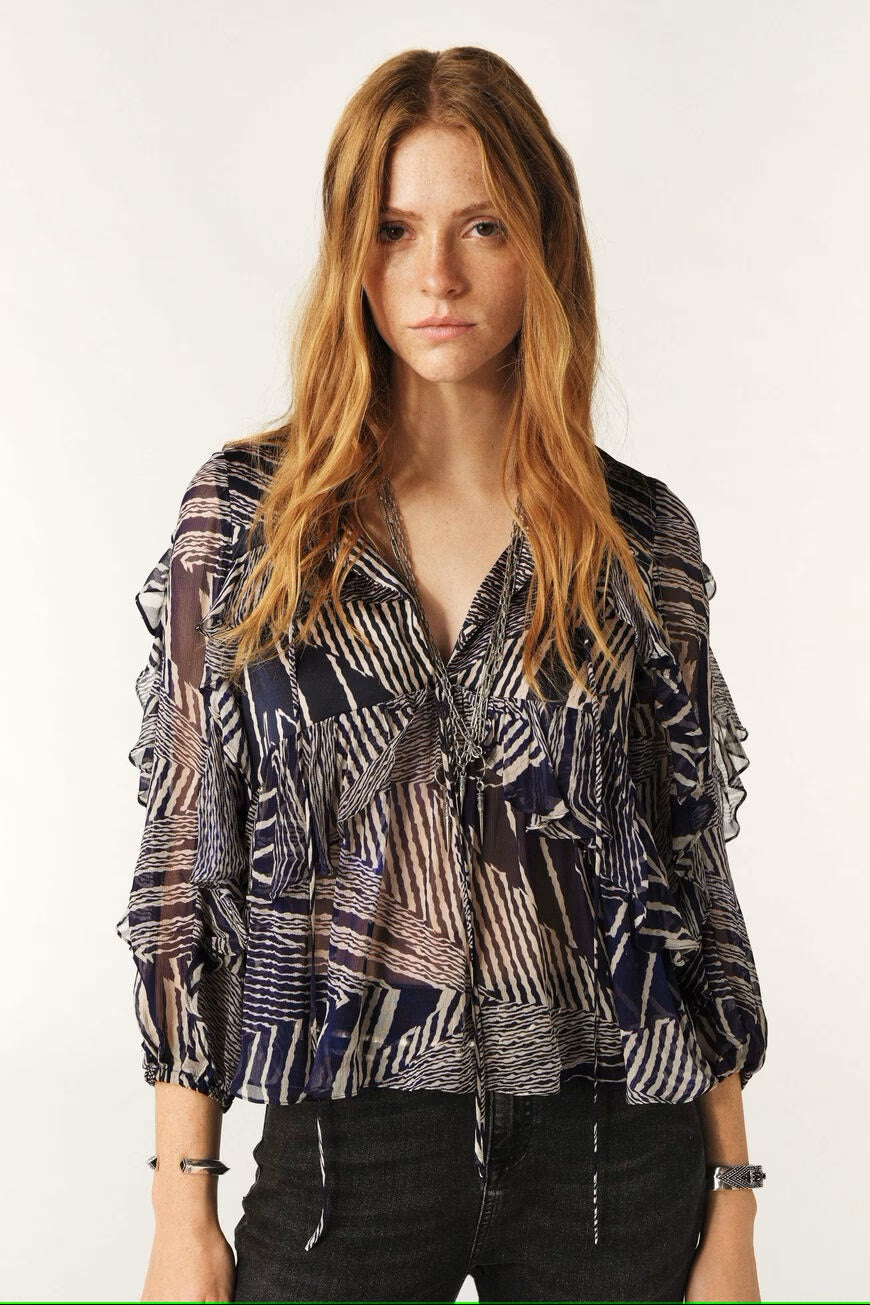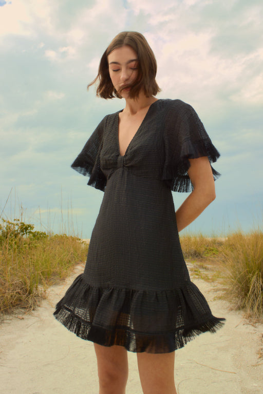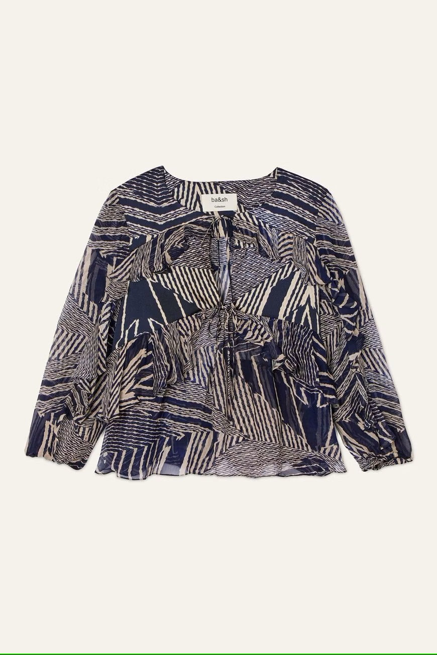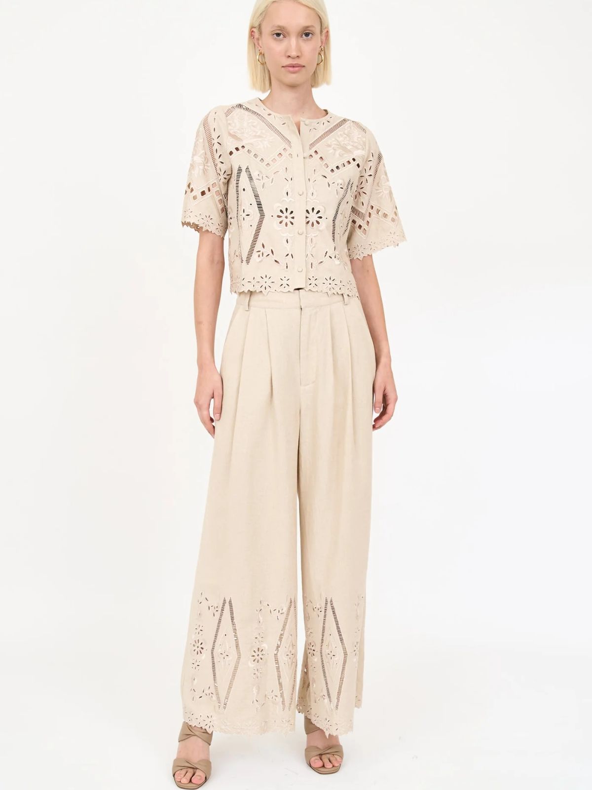 Organic Cotton Blend Rib Trim V-Neck Sweater in Azure Blue