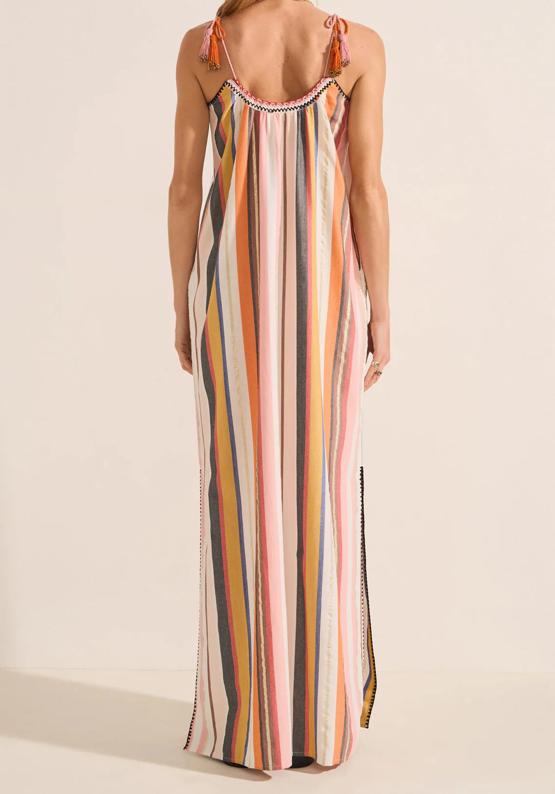 Elevate your style with the Hylas Dress by Ilio Nema. This maxi-length dress features a gathered neckline that creates a sleek, elegant silhouette, while adjustable rope tie straps adorned with gold beaded tassels add a touch of luxury. Designed with functional pockets, a high slit, and intricate hand-crochet and hand-stitching details, it’s the perfect choice for any occasion.