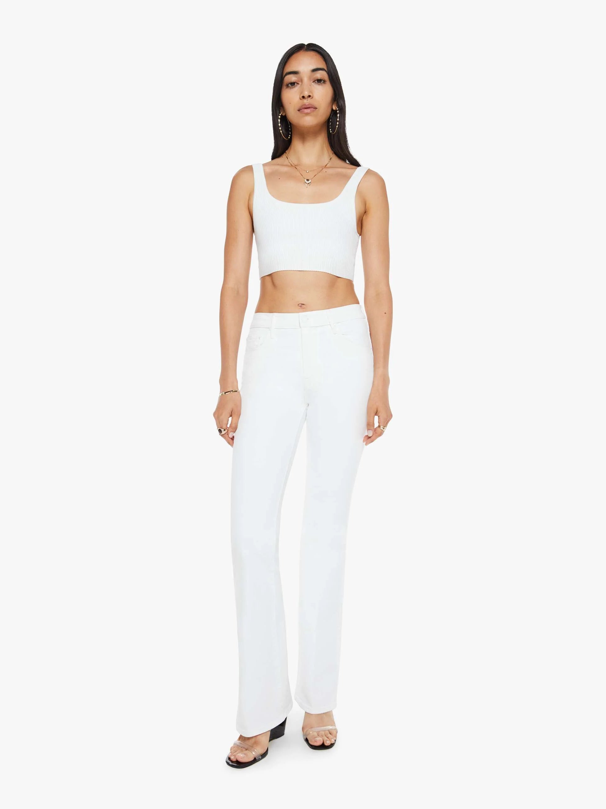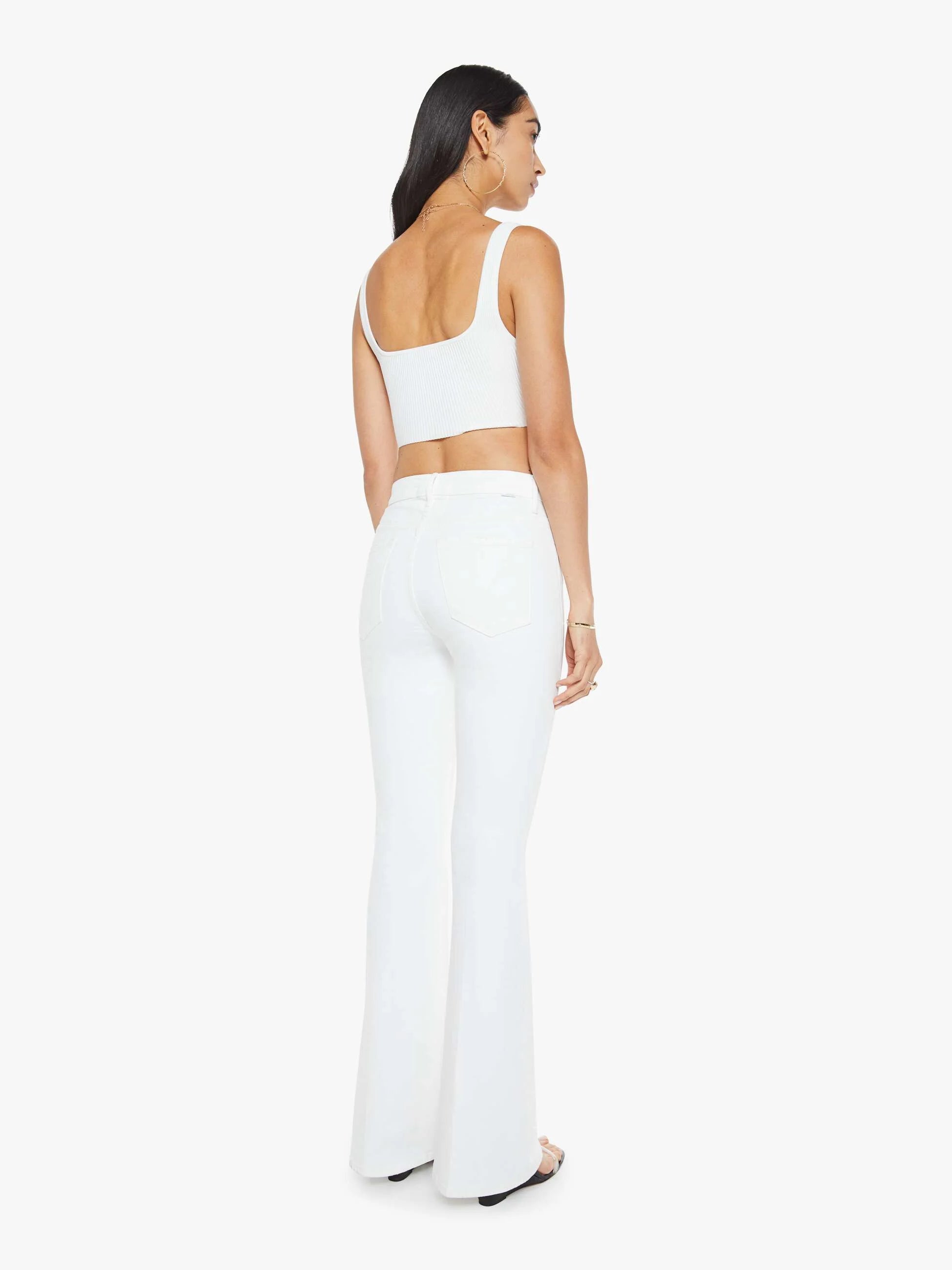 MOTHER’s keeping it classic. This fan-favorite flare features a mid-rise, a 31-inch inseam, and a clean hem for a timeless look. Crafted from semi-rigid SUPERIOR denim, Totally Innocent is a crisp white wash with tonal hardware for effortless sophistication.