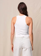 Fine 2x1 Rib Cropped High Neck Tank in White