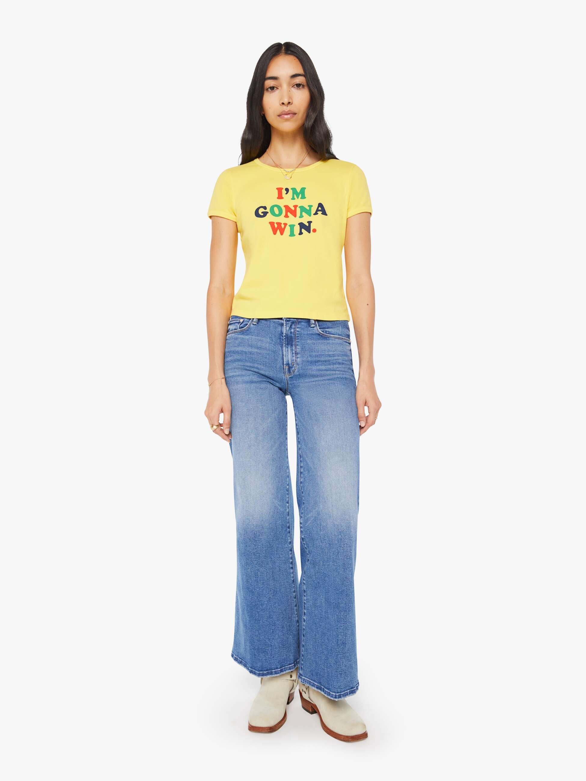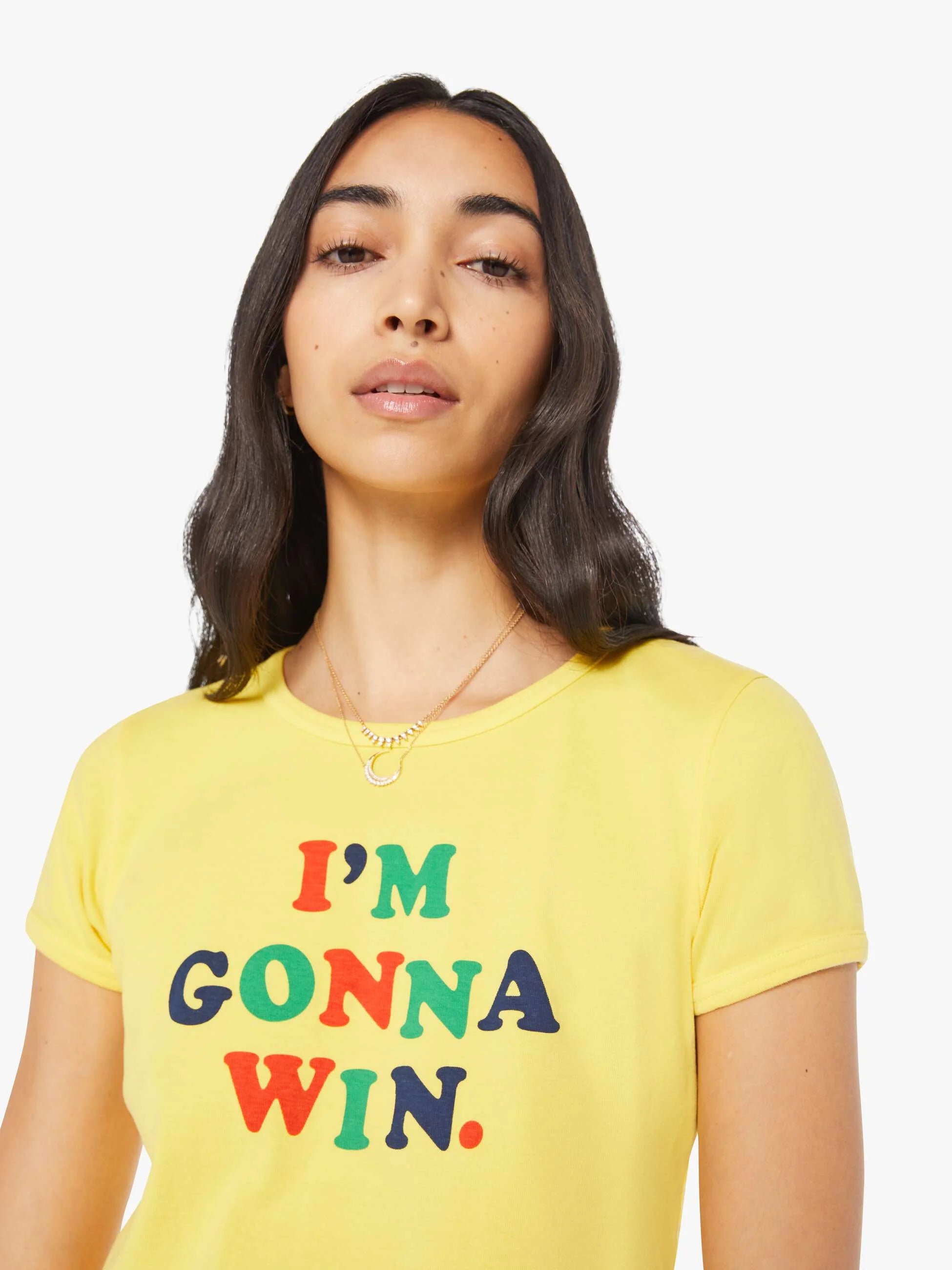 Team MOTHER. This shrunken crewneck tee features extra-short sleeves, a cropped hem, and a retro athletic vibe. Made from 100% cotton in a sunny yellow, The Itty Bitty Ringer in I'm Gonna Win is finished with bold, colorful block text across the front.