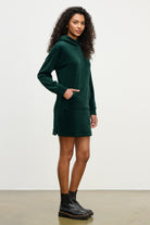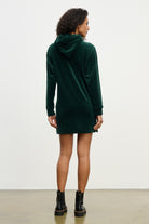 Effortless comfort meets chic versatility in this velour hoodie dress. Crafted from plush, soft-touch fabric, it’s designed with a relaxed hooded neckline, long sleeves, and a classic kangaroo pocket. The mini length gives it a modern edge, making it perfect for styling with sneakers for laid-back days or boots for a more elevated look. Cozy yet polished, this dress is a go-to for off-duty cool.