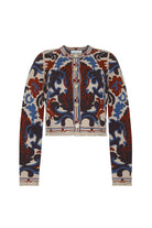 The most delightful knit cardigan, this charming piece is adorned with lustrous novelty gold buttons that elevate its playful elegance. Featuring a fitted, boxy silhouette in a jacquard knit, it’s finished with fringe detailing at the cuffs and hem for a touch of texture. Long sleeves and a classic cut make it perfect for layering over your favorite basics. Pair it with the matching Lindy Skirt for a coordinated look or style it with denim for an effortlessly chic ensemble. To preserve its shape, we recommend folding this special piece rather than hanging.