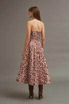 High-waisted A-line midi skirt featuring paneled detailing across the front and back for a flattering, structured shape. Crafted from an animal-patterned woven jacquard in rose gold and blush with thoughtfully placed print. Fully lined with functional side-seam pockets and a center-back invisible zipper with hook-and-eye closure. Pair it with the Elsa Top.